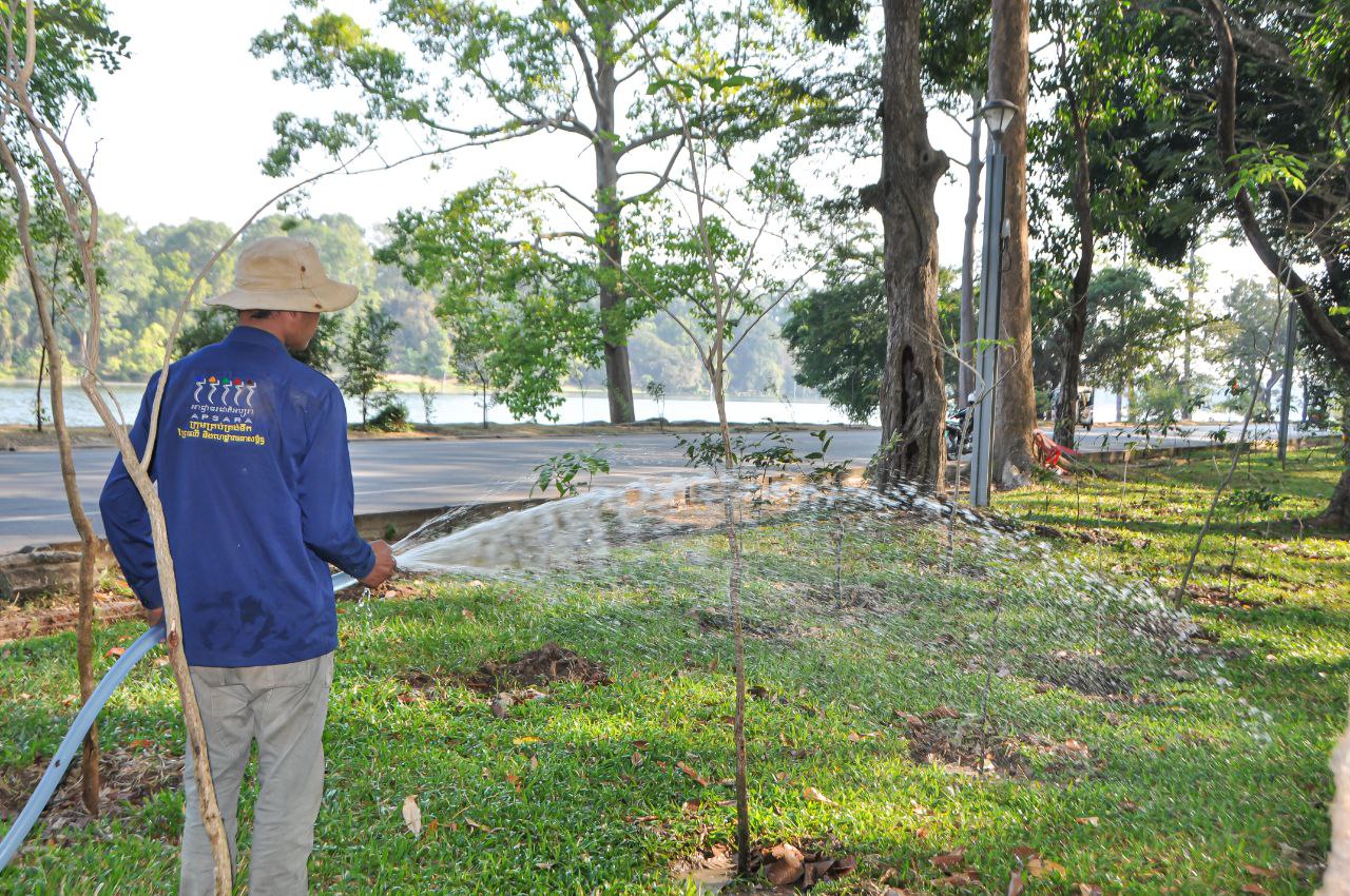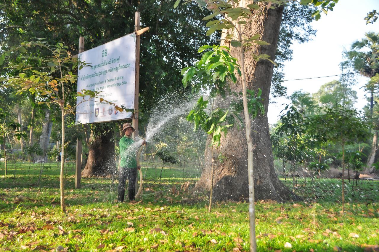 (សៀមរាប)៖ ក្នុងរមណីយដ្ឋានអង្គរ មានដើមឈើច្រើនប្រភេទ ដែលជាផ្នែកមួយជួយដល់កិច្ចការអភិរក្សប្រាសាទ។ ក្នុងការងារនេះ ក្រុមការងារបានស្រោចទឹកជាប្រចាំ ដើម្បីចូលរួមចំណែកធ្វើឱ្យរមណីយដ្ឋានអង្គរមានភាពទាក់ទាញ។