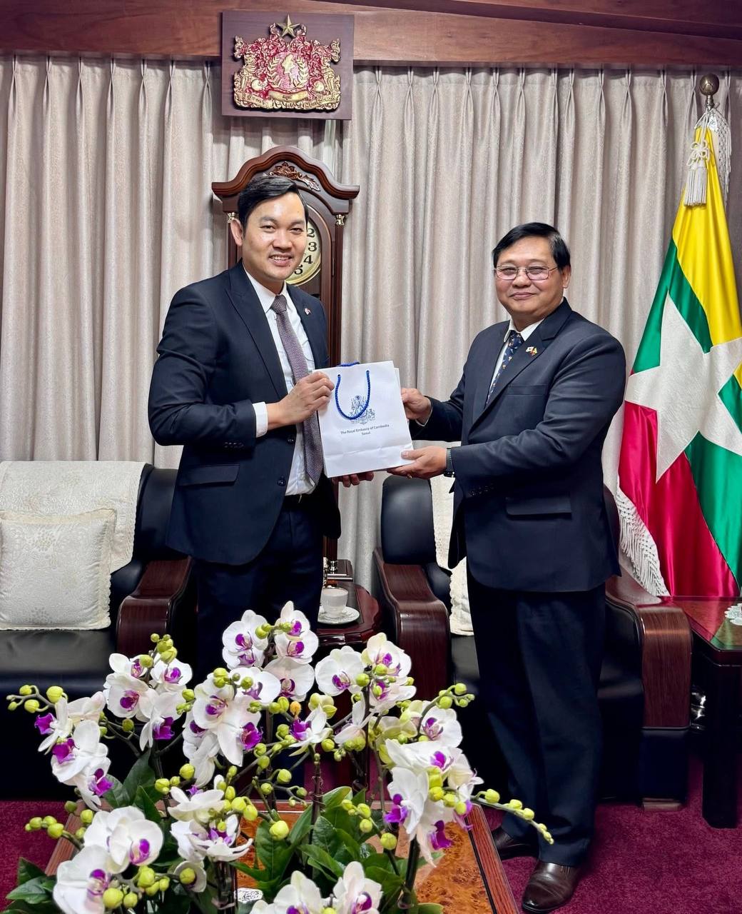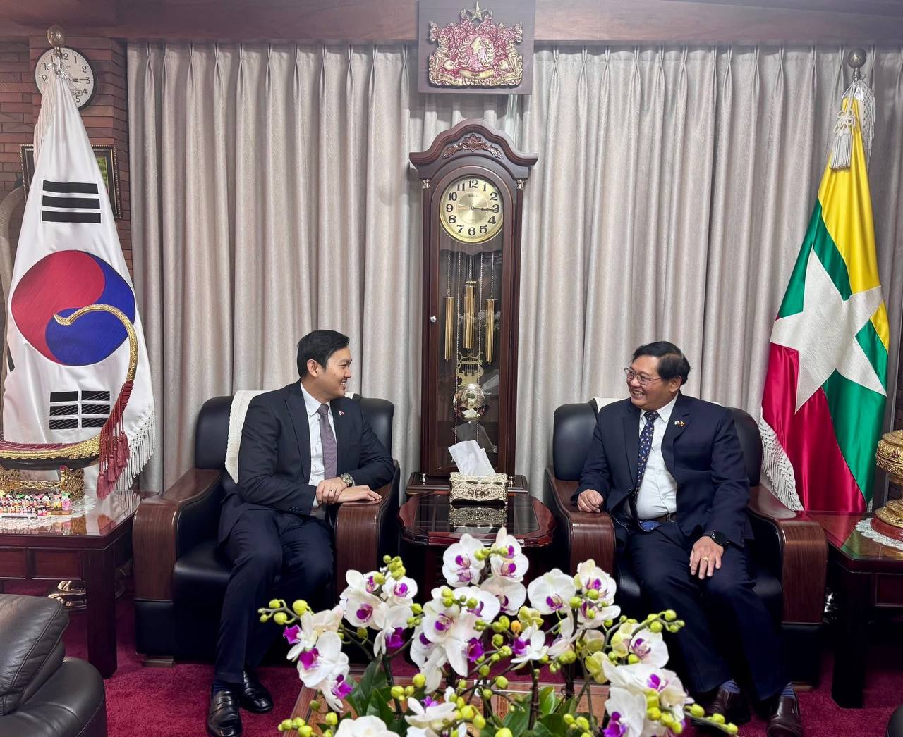 ឯកអគ្គរាជទូតកម្ពុជា និងភារធារីស្តីទីស្ថានទូតមីយ៉ាន់ម៉ា ប្រចាំកូរ៉េ ជួបពិភាក្សាពង្រឹងកិច្ចសហប្រតិបត្តិការ និងសន្តិសុខពលរដ្ឋ