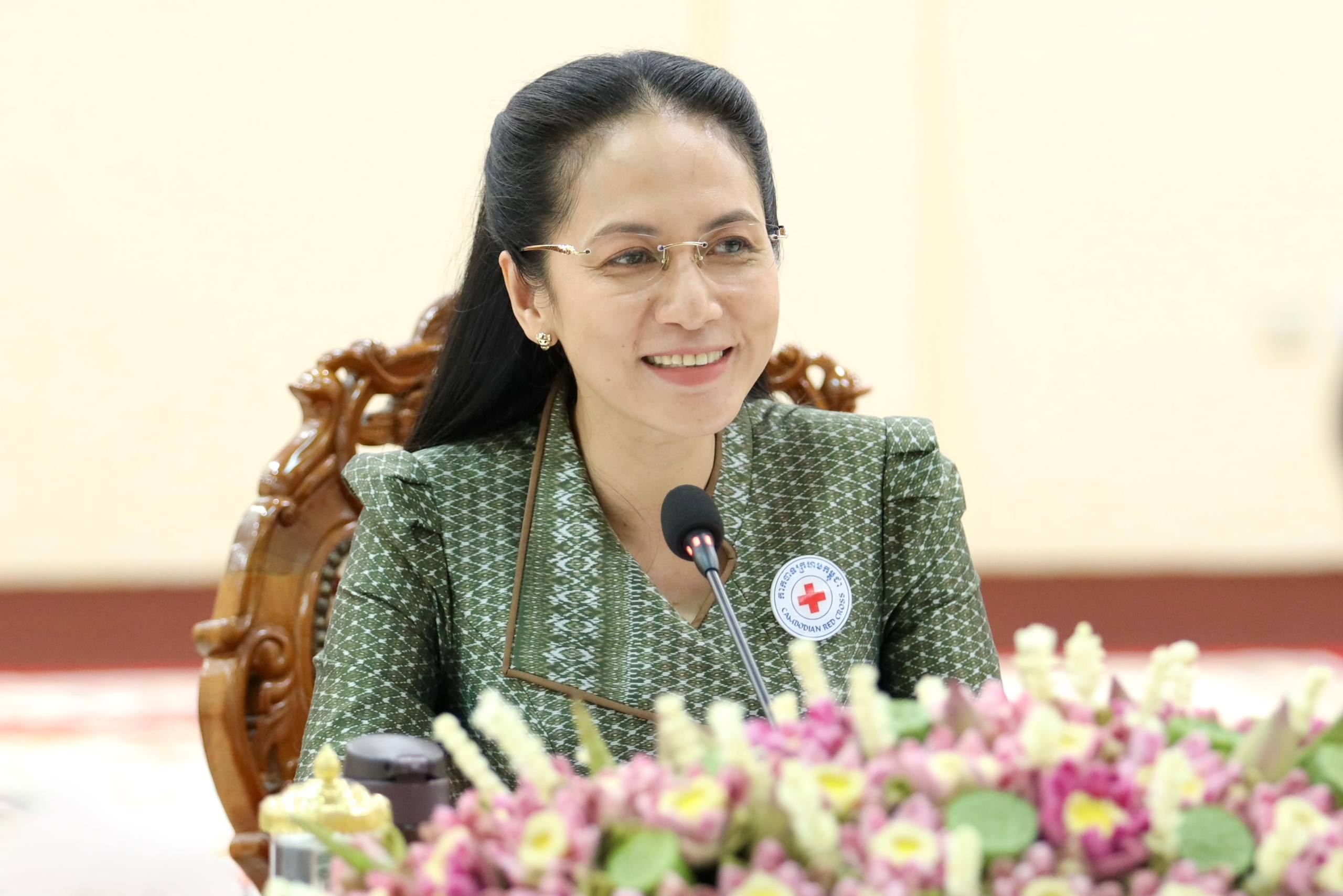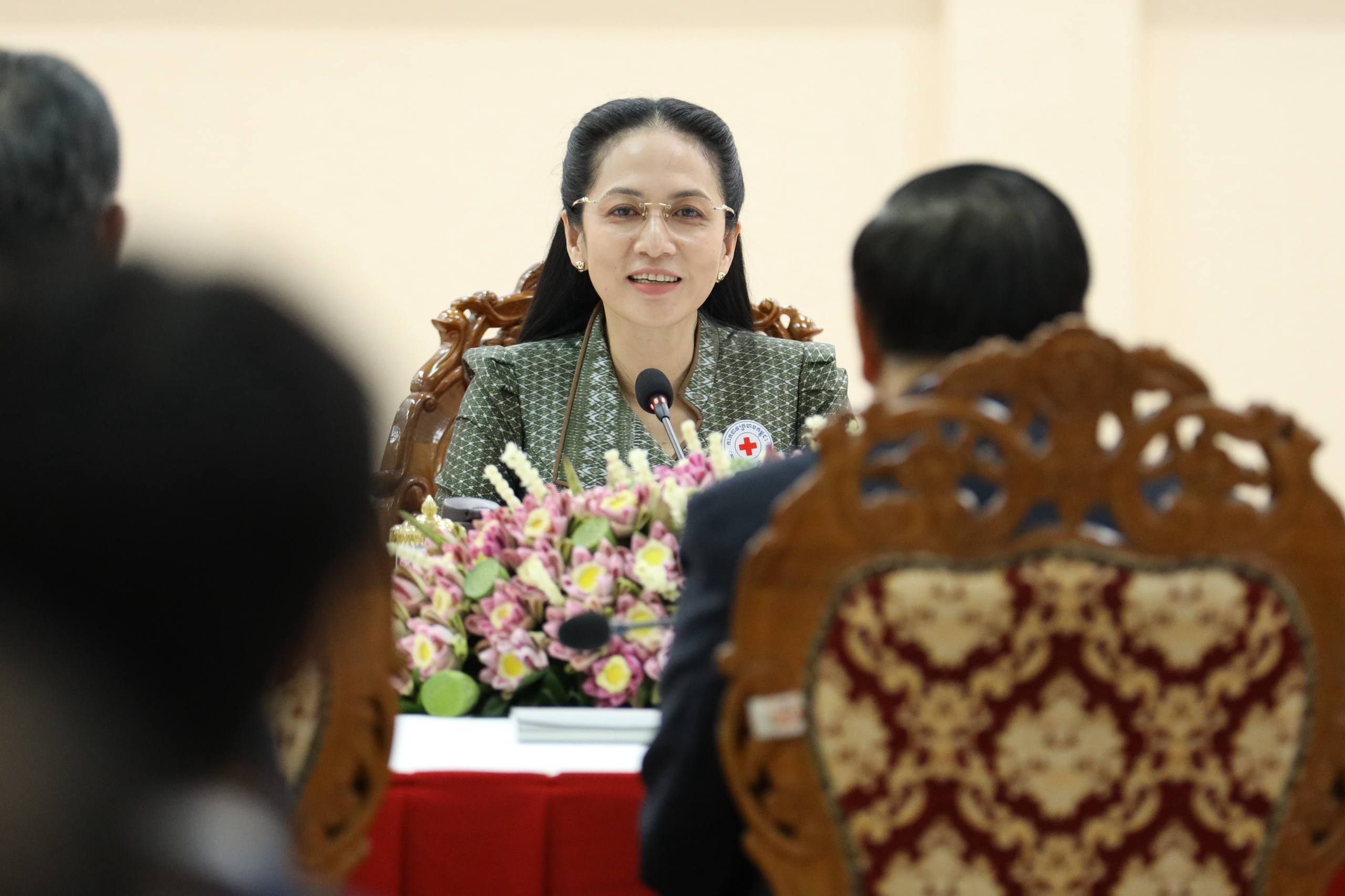ស្ថិតក្នុងឱកាសនោះ លោកជំទាវបណ្ឌិត ពេជ ចន្ទមុន្នី ហ៊ុនម៉ាណែត បានពាំនាំនូវព្រះរាជសវណីរបស់ សម្តេចព្រះមហាក្សត្រី ព្រះវររាជមាតាជាតិខ្មែរ ព្រះប្រធានកិត្តិយស និងប្រសាសន៍របស់សម្តេចកិត្តិព្រឹទ្ធបណ្ឌិត ប៊ុន រ៉ានី ហ៊ុនសែន ដែលផ្តាំផ្ញើសួរសុខទុក្ខ និងថ្លែងអំណរគុណយ៉ាងជ្រាលជ្រៅចំពោះ សមាគមឧកញ៉ាកម្ពុជា ដែលតែងតែបានចូលរួមបរិច្ចាគថវិកា ជូនកាកបាទក្រហមកម្ពុជា។
