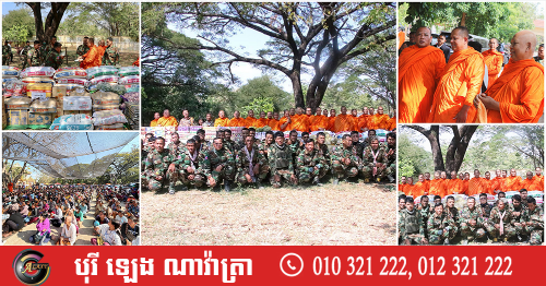 សម្ដេចព្រះឧត្ដមមុនី ជា សំអាង ដឹកនាំព្រះមន្ដ្រីសង្ឃ និមន្តសួរសុខទុក្ខ និងឧបត្ថម្ភគ្រឿងឧបភោគ-បរិភោគ ដល់វីរកងព័ទជួរមុខ នៅខេត្ដឧត្ដរមានជ័យ និងសួរសុខទុក្ខព្រះសង្ឃភៀសសឹក-ប្រជាជនភៀសសឹក នៅខេត្ដបន្ទាយមានជ័យ