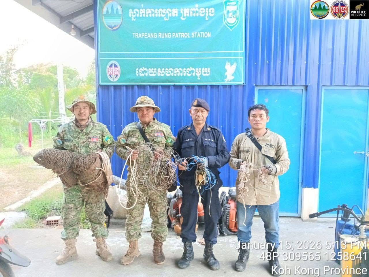 មន្រ្តីឧទ្យានុរក្ស និងកម្លាំងកងរាជអាវុធហត្ថ ចុះល្បាត បង្ក្រាបបទល្មើសធនធានធម្មជាតិដោះអន្ទាក់សត្វព្រៃជាង ១០០ខ្សែ ក្នុងឧទ្យានជាតិជួរភ្នំក្រវាញ និងដែនជម្រកសត្វព្រៃតាតៃ ខេត្តកោះកុង