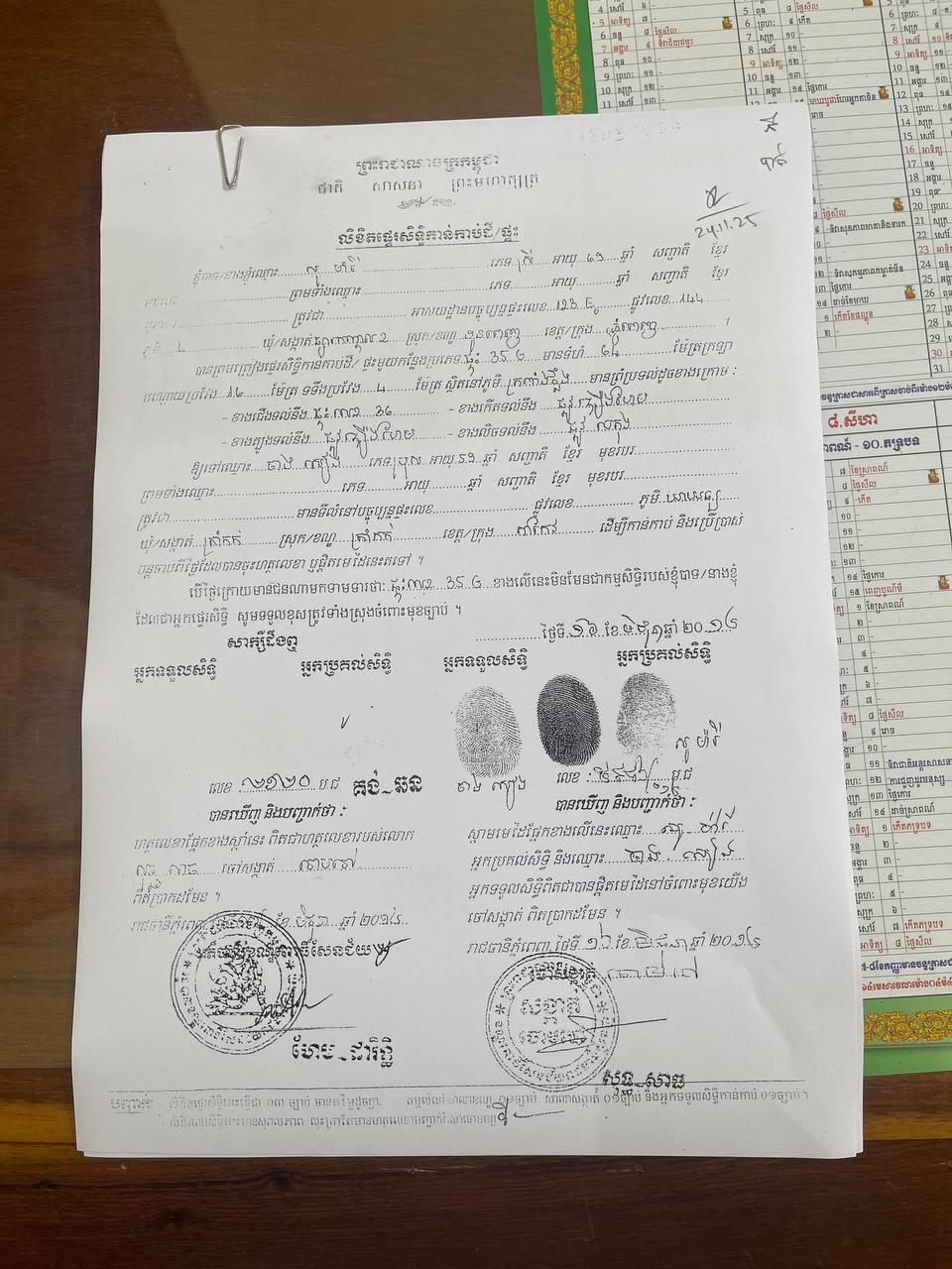 លោកថា ប្រសិនបើថ្ងៃមុខមានការពាក់ព័ន្ធ និងការយកទៅដាក់បញ្ចាំ ការធ្វើអ្វីប៉ូតែក ជាមួយបុគ្គលណាផ្សេង ឬពាក់ព័ន្ធនិងការផ្ទេរសិទ្ធិ ធ្វើអំណោយ ទៅឲ្យបុគ្គលណាផ្សេង សូមទទួលខុសត្រូវចំពោះមុខច្បាប់ជាធរមាន និងសូមបដិសេធ រាល់ការយកឯកសារនេះ ទៅប្រើប្រាស់ខុសច្បាប់ផ្សេងៗ។អ្នកស្រីសូមជូនដំណឹងថា បើបងប្អូនណារើសបានសូមយកមកប្រគល់ឲ្យគាត់វិញផង លោកនឹងមានជូនសាគុណ៕