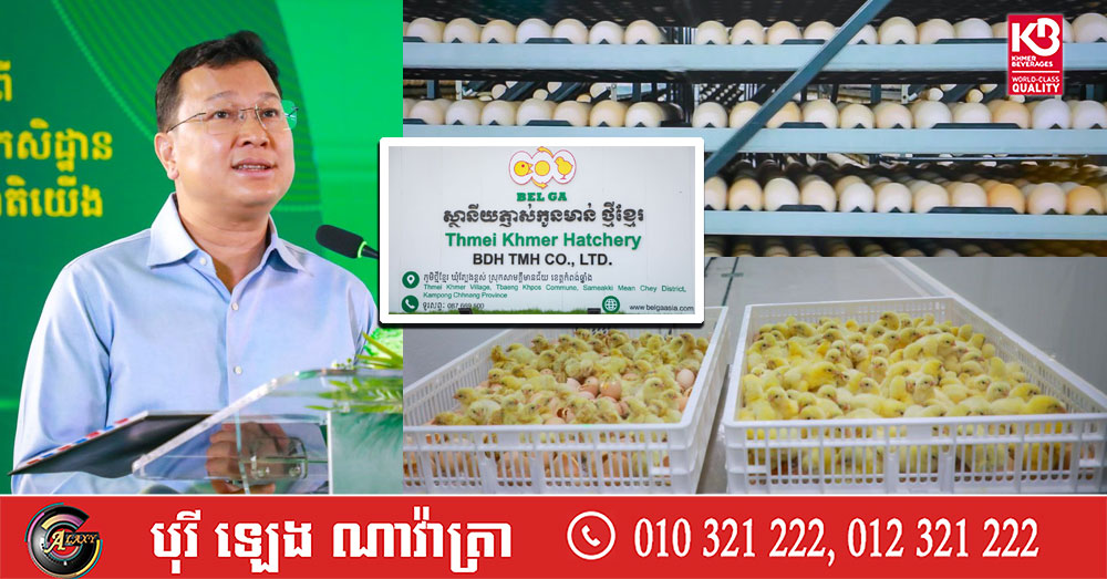 (កំពង់ឆ្នាំង)៖ ស្ថានីយភ្ញាស់កូនមាន់ ថ្មីខ្មែរ Bel GA ជាកន្លែងភ្ញាស់កូនមាន់លំដាប់អន្តរជាតិដំបូងគេបង្អស់នៅកម្ពុជា បានចាប់ផ្ដើមសម្ពោធជាផ្លូវការ នៅថ្ងៃទី១៦ ខែមករា ឆ្នាំ២០២៦ ក្រោមអធិបតីភាពរបស់ លោក ឌិត ទីណា រដ្ឋមន្ត្រីក្រសួងកសិកម្ម រុក្ខាប្រមាញ់ និងនេសាទ។