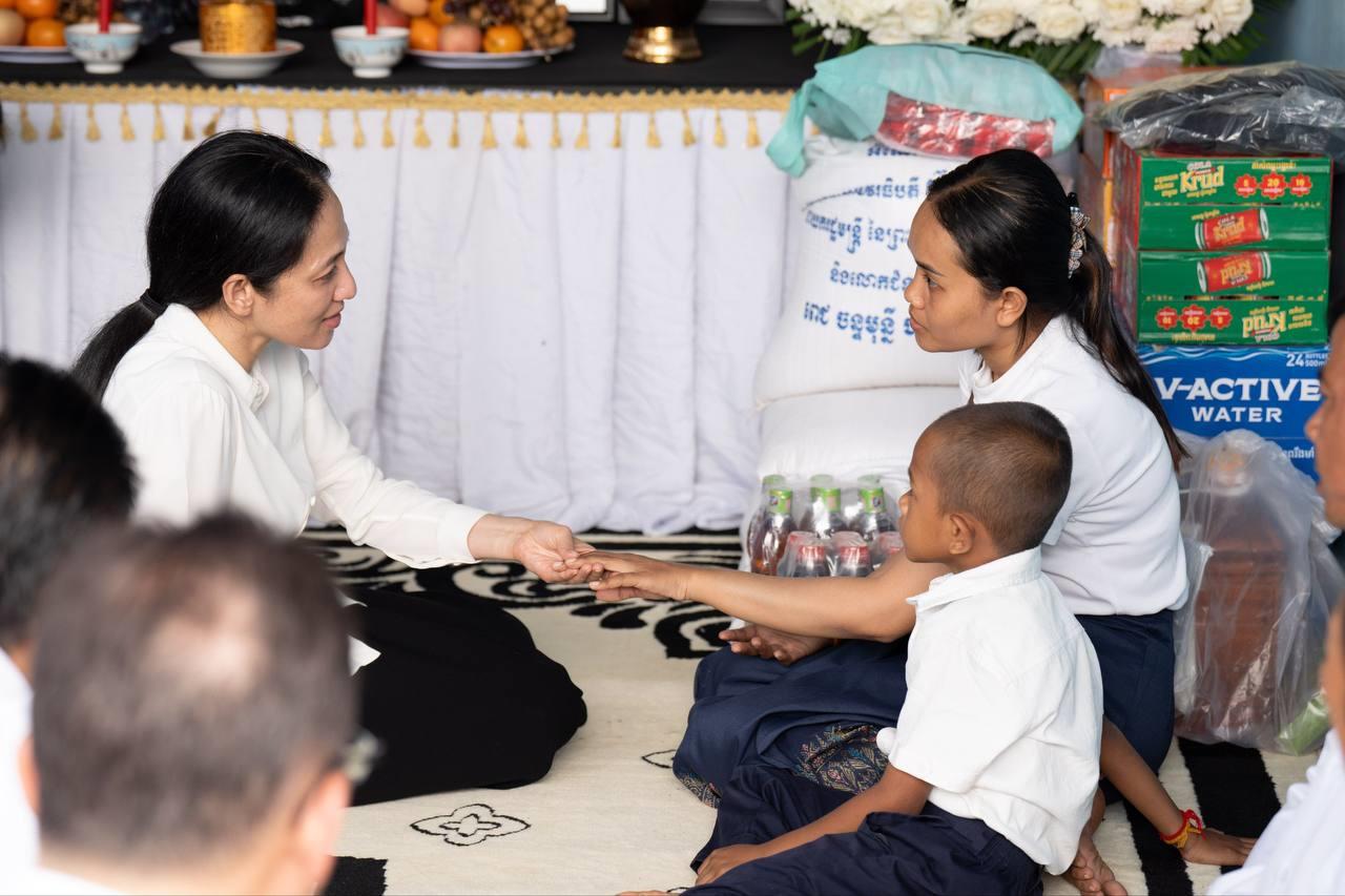ទន្ទឹមនឹងនេះ លោកជំទាវបណ្ឌិត ក៏បាននាំយកមកជាមួយនូវអំណោយដ៏ថ្លៃថ្លារបស់ សម្តេចធិបតី និងលោកជំទាវបណ្ឌិត ជូនដល់ក្រុមគ្រួសារនៃសព ដើម្បីជួយសម្រួលដល់ការរស់នៅប្រចាំថ្ងៃ ។