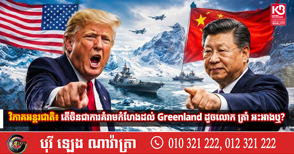 (ប៉េកាំង)៖ ប្រធានាធិបតីអាមេរិក លោក ដូណាល់ ត្រាំ បានគំរាមម្ដងហើយម្ដងទៀតថានឹងដណ្ដើមកាន់កាប់ដែនដី Greenland ពីដាណឺម៉ាកដែលជាសមាជិក NATO ដើម្បីការពារដែនដីយុទ្ធសាស្ត្រ ដ៏សំខាន់ក្នុងតំបន់អាក់ទិកមួយនេះពីកណ្ដាប់ដៃរបស់ចិន។ ក៏ប៉ុន្តែក្រុមអ្នកវិភាគយល់ឃើញពីផ្សេងគ្នាពីលោក ត្រាំ ដោយនិយាយថាចិនគ្រាន់តែជាតួអង្គបន្ទាប់បន្សំមួយនៅក្នុងតំបន់អាក់ទិកប៉ុណ្ណោះ និងបច្ចុប្បន្ន មិនអាចបង្កការគំរាមកំហែងដូចដែលលោក ត្រាំ បានអះអាងនោះទេ។ ខាងក្រោមនេះជាចំណុចសំខាន់ៗគួរដឹង៖