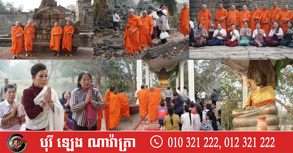 សម្តេចព្រះពោធិវ័ង្ស កិត្តិបណ្ឌិត ណយ ច្រឹក យាងអុចទៀនធូបបួងសួងសូមសេចក្តីសុខ នៅប្រាសាទបន្ទាយឆ្មារ សូមសុខសន្តិភាពសម្រាប់កម្ពុជា និងឧទ្ទិសកុសលដល់កងទ័ពពលី