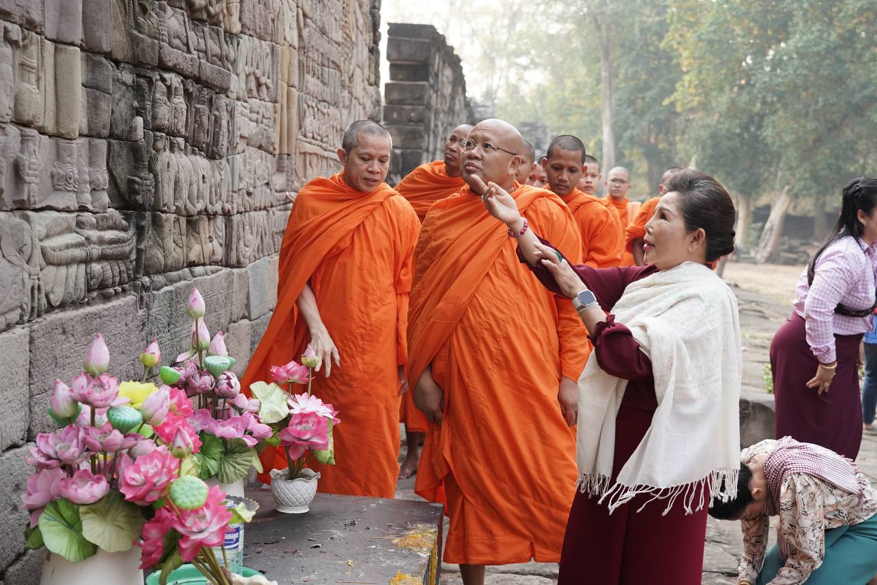 (បន្ទាយមានជ័យ)៖ សម្តេចព្រះពោធិវ័ង្ស កិត្តិបណ្ឌិត ណយ ច្រឹក សម្តេចព្រះសង្ឃនាយករងទី១ នៃព្រះរាជាណាចក្រកម្ពុជា ព្រះចៅអធិការវត្តច័ន្ទបុរីវង្ស នៅព្រឹកថ្ងៃទី១៧ ខែមករា ឆ្នាំ២០២៦នេះ ជាមួយគណៈសង្ឃនាយក និងសប្បុរសជននាៗ បានយាង និមន្ត និងអញ្ជើញអុចធូបទៀន បួងសួងសុំសេចក្តីសុខ ក្នុងបរិវេណប្រាសាទបន្ទាយឆ្មារ ក្នុងខេត្តបន្ទាយមានជ័យ សូមសុខសន្តិភាពជូនប្រទេសកម្ពុជា ពិសេសឧទ្ទិសកុសលដល់កងទ័ពពលី ក្នុងបុព្វហេតុការពារជាតិ៕