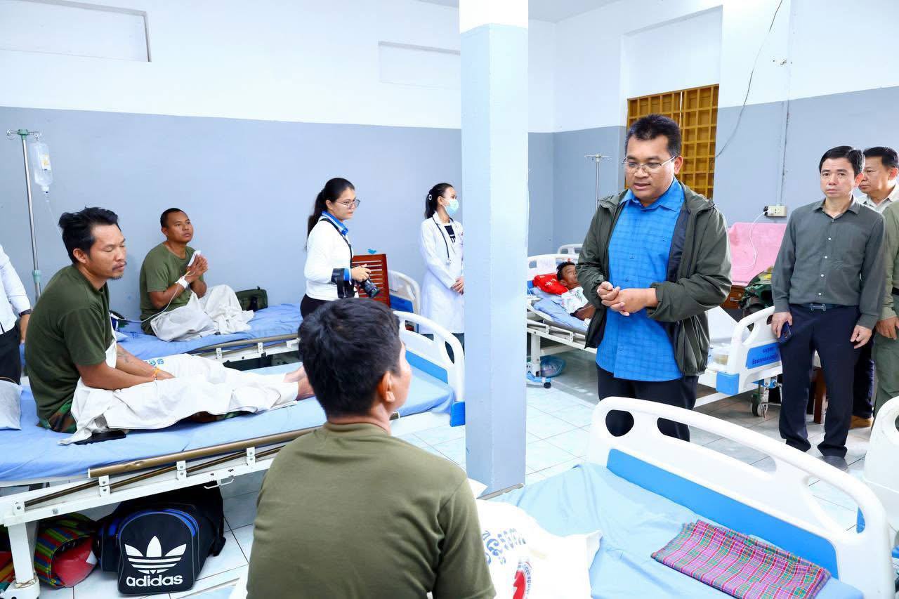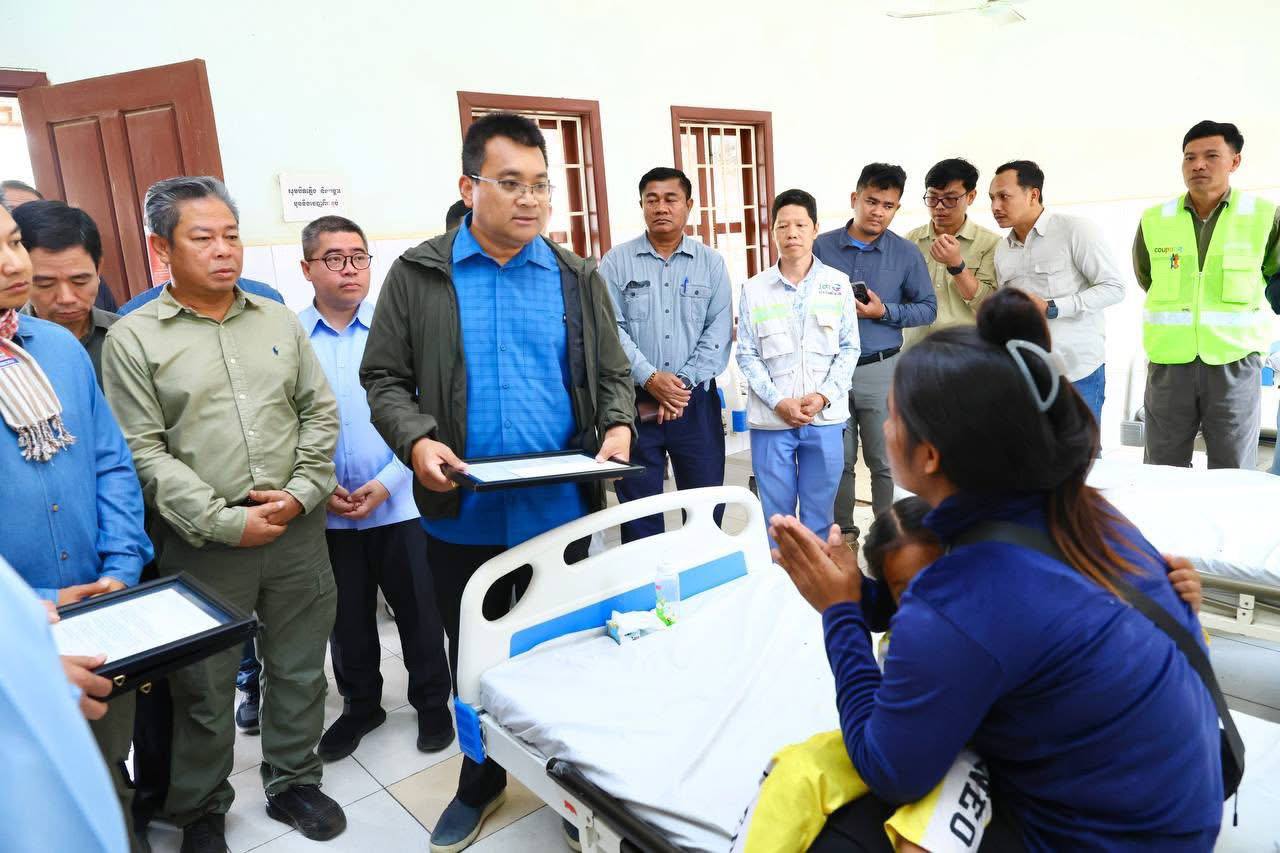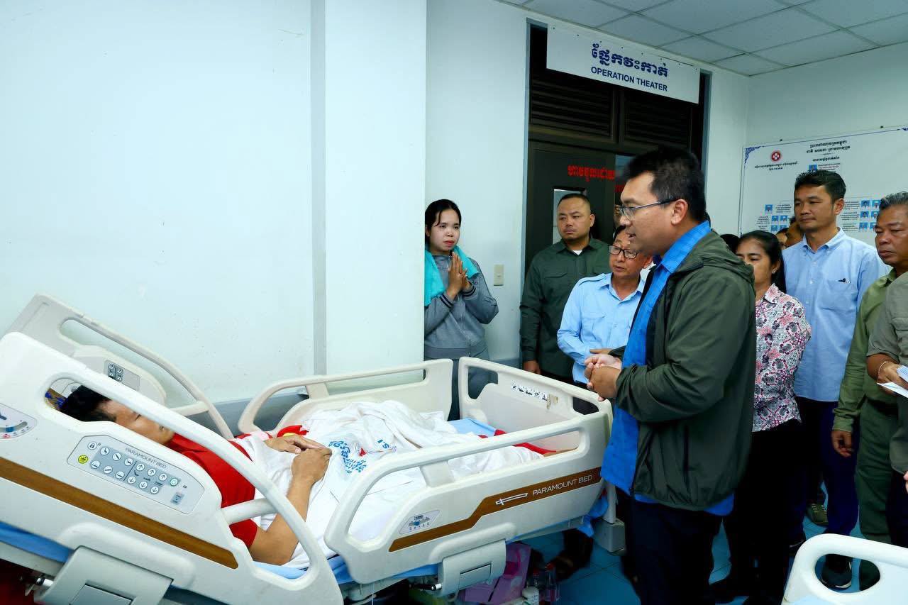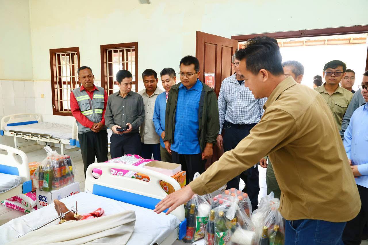 (បន្ទាយមានជ័យ)៖ លោក ប៉េង ពោធិ៍នា រដ្ឋមន្ត្រីក្រសួងសាធារណការ និងដឹកជញ្ជូន នាព្រឹកថ្ងៃទី១៧ ខែមករា ឆ្នាំ២០២៦នេះ បានដឹកនាំគណៈប្រតិភូអន្តរក្រសួង និងដោយមានការចូលរួមពីតំណាងទីភ្នាក់ងារសហប្រតិបត្តិការអន្តរជាតិនៃប្រទេសជប៉ុន (JICA) ចុះជួបសំណេះសំណាល សួរសុខទុក្ខ និងនាំយកអំណោយសម្ភារចាំបាច់ជូនដល់មន្ត្រីគម្រោងស្តារ និងលើកកម្រិតគុណភាពកំណាត់ផ្លូវជាតិលេខ៥ (សិរីសោភ័ណ-ប៉ោយប៉ែត) ចំនួន ២គ្រួសារ និងវីរកងទ័ពចំនួន ៧នាក់ នៅមន្ទីរពេទ្យបង្អែកមិត្តភាពកម្ពុជា-ជប៉ុន មង្គលបូរី ខេត្តបន្ទាយមានជ័យ ដែលរងគ្រោះដោយសារថៃឈ្លានពាន នាពេលកន្លងមក។