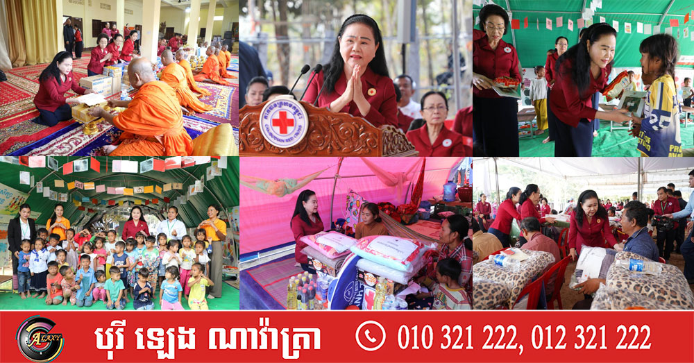 (សៀមរាប)៖ អ្នកម្ដាយមនុស្សធម៌ សម្តេចកិត្តិព្រឹទ្ធបណ្ឌិត ប៊ុន រ៉ានី ហ៊ុនសែន ប្រធានកាកបាទក្រហមកម្ពុជា នៅព្រឹកថ្ងៃទី១៧ ខែមករា ឆ្នាំ២០២៦នេះ បានអញ្ជើញជួបសំណេះសំណាល សួរសុខទុក្ខដោយផ្ទាល់ជាលើកទី៣ និងផ្តល់អំណោយមនុស្សធម៌ជូនប្រជាជនភៀសសឹកចំនួន ២,២០៥គ្រួសារ (ស្មើនឹង ៦,៧៤៦នាក់) ដែលមកស្នាក់នៅបណ្តោះអាសន្ន តាមមណ្ឌលសុវត្ថិភាពចំនួន១៣ និងនៅតាមផ្ទះសាច់ញាតិ ក្នុងស្រុកក្រឡាញ់ ខេត្តសៀមរាប ក្នុងនោះមានមកពីខេត្តឧត្តរមានជ័យចំនួន ១,៩១៧គ្រួសារ, បន្ទាយមានជ័យ ១៧៤គ្រួសារ, បាត់ដំបង ១៨គ្រួសារ, ប៉ៃលិន ៤គ្រួសារ និងព្រះវិហារ ១គ្រួសារផងដែរ។
