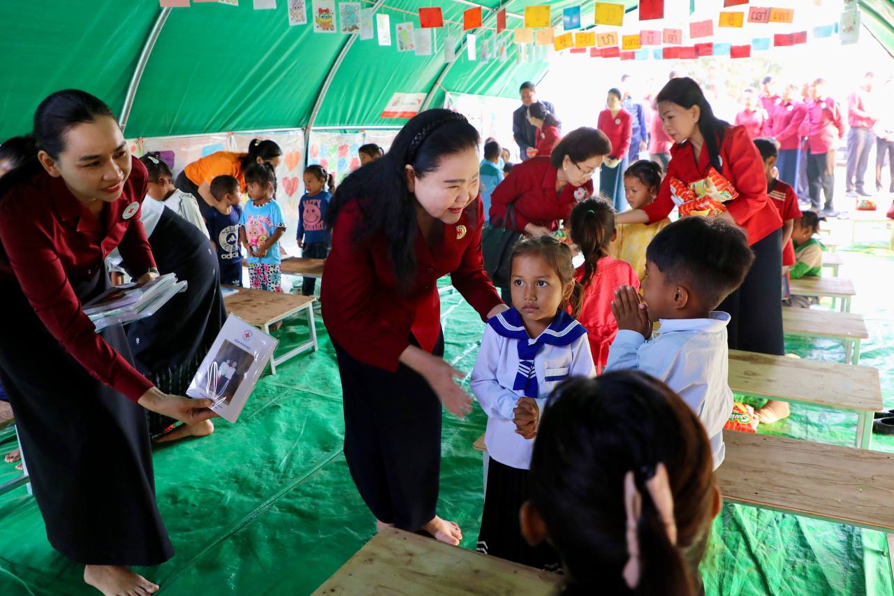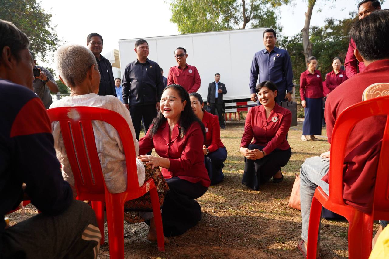 ពិធីសំណេះសំណាលប្រកបដោយភាពកក់ក្ដៅខាងលើនេះ បានប្រព្រឹត្តទៅនៅមណ្ឌលសុវត្ថិភាពក្នុងភូមិសាស្ត្រស្រុកក្រឡាញ់ ខេត្តសៀមរាប ដែលមានការអញ្ជើញអមដំណើរដោយថ្នាក់ដឹកនាំ ភរិយាថ្នាក់ដឹកនាំ និងសប្បុរសជនជាច្រើនរូប រួមទាំងលោកប្រាក់ សោភ័ណ អភិបាលនៃគណៈអភិបាលខេត្ត និងជាប្រធានគណៈកម្មាធិការសាខាកាកបាទក្រហមកម្ពុជា ខេត្តសៀមរាប