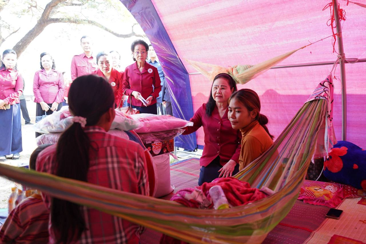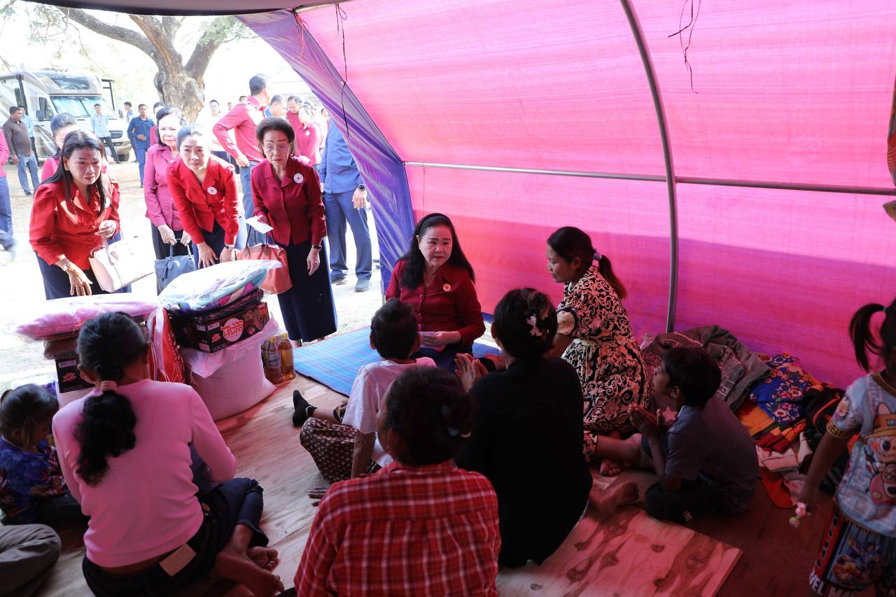 នាកិច្ចសំណេះសំណាលសួរសុខទុក្ខជាមួយប្រជាជនភៀសសឹកទាំងអស់ អ្នកម្ដាយមនុស្សធម៌ សម្តេចកិត្តិព្រឹទ្ធបណ្ឌិត ប៊ុន រ៉ានី ហ៊ុនសែន បានពាំនាំនូវព្រះរាជបន្ទូលរបស់ ព្រះករុណា ព្រះមហាក្សត្រ ជាអម្ចាស់ជីវិតលើត្បូង និងព្រះសវណីយ៍ សម្តេចព្រះមហាក្សត្រី ព្រះវររាជមាតាជាតិខ្មែរ ព្រះប្រធានកិត្តិយស កាកបាទក្រហមកម្ពុជា ជាទីគោរពសក្ការៈដ៏ខ្ពង់ខ្ពស់បំផុត ដែលព្រះអង្គទាំងទ្វេបានផ្តាំផ្ញើសួរសុខទុក្ខ និងក្តីនឹករលឹក ជាពិសេសការគិតគូរពីសុខទុក្ខប្រជានុរាស្ត្ររបស់ព្រះអង្គនៅគ្រប់ទីកន្លែង និងគ្រប់ពេលវេលា ព្រមទាំងសូមជូនពរបងប្អូនប្រជាពលរដ្ឋសូមមានសុខភាពល្អ ដើម្បីបន្តប្រកបរបរចិញ្ចឹមជីវិតតទៅមុខទៀត។