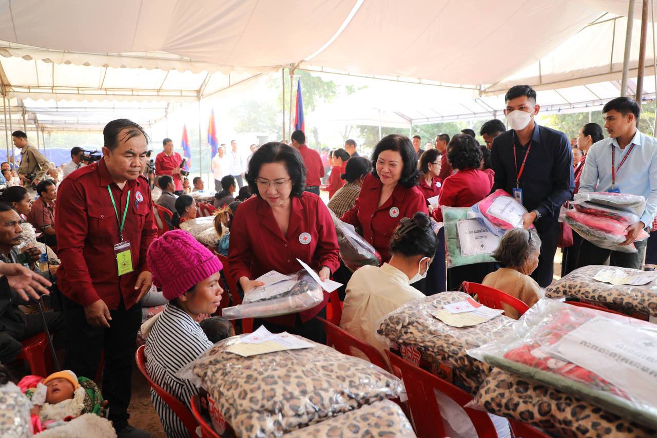 សម្តេចកិត្តិព្រឹទ្ធបណ្ឌិត ប៊ុន រ៉ានី ហ៊ុនសែន បានថ្លែងបញ្ជាក់ថា កាកបាទក្រហមកម្ពុជា ដែលជាជំនួយការឱ្យអាជ្ញាធរសាធារណៈក្នុងវិស័យមនុស្សធម៌ ទោះបីជាស្ថិតក្នុងកាល:ទេស:ណាក៏ដោយក៏កាកបាទក្រហមកម្ពុជា នៅតែគិតគូរយកចិត្តទុកដាក់ដល់ប្រជាពលរដ្ឋគ្រប់ពេលវេលា ហើយស្បៀង-សម្ភារ ដែលនាំមកចែកជូនសម្រាប់ជួយសម្រាលការលំបាក ដល់បងប្អូនប្រជាពលរដ្ឋនាពេលនេះ គឺទទួលបានពីសប្បុរសជនគ្រប់មជ្ឈដ្ឋាន ដែលមានសទ្ធាជ្រះថ្លាឧបត្ថម្ភជាស្បៀង សម្ភារ និងថវិកាជូនដល់កាកបាទក្រហមកម្ពុជា ទើបកាកបាទក្រហមកម្ពុជានាំយកអំណោយទាំងអស់នេះ មកជួយសម្រាលការលំបាកដល់បងប្អូនប្រជាពលរដ្ឋនាពេលនេះ។