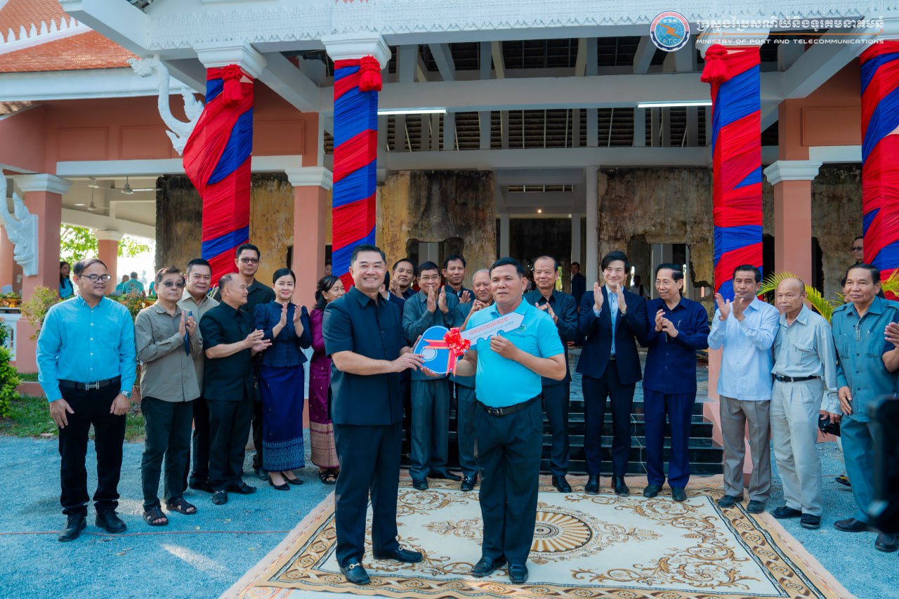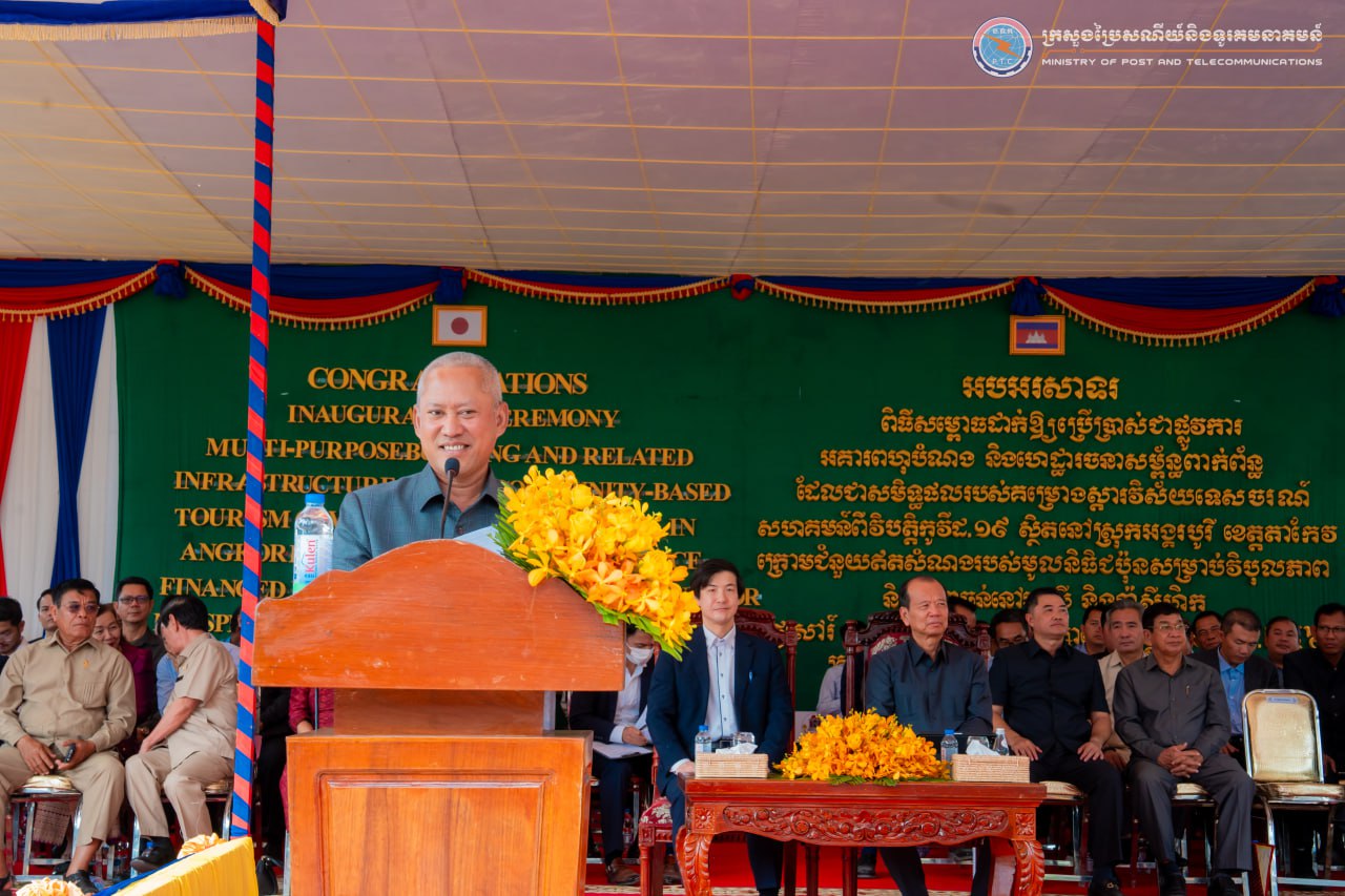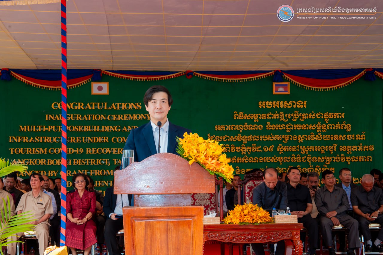 (តាកែវ)៖ លោក ជា វ៉ាន់ដេត រដ្ឋមន្រ្តីក្រសួងប្រៃសណីយ៍ និងទូរគមនាគមន៍ (ក.ប.ទ.) និងជាប្រធានក្រុមការងាររាជរដ្ឋាភិបាលចុះមូលដ្ឋានខេត្តតាកែវ និងលោក NAGASE Kensuke (ណាហ្គាសិ កេនស៊ូកិ) អនុប្រធានបេសកកម្មនៃស្ថានទូតជប៉ុនប្រចាំកម្ពុជា នាព្រឹកថ្ងៃទី១៧ ខែមករា ឆ្នាំ២០២៦ បានអញ្ជើញជាអធិបតី ក្នុងពិធីសម្ពោធដាក់ឱ្យប្រើប្រាស់ជាផ្លូវការ «អគារពហុបំណង និងហេដ្ឋារចនាសម្ព័ន្ធពាក់ព័ន្ធ» ដែលជាសមិទ្ធផលរបស់គម្រោងស្តារវិស័យទេសចរណ៍សហគមន៍ពីវិបត្តិកូវីដ-១៩ នៅសាលាស្រុកអង្គរបូរី ខេត្តតាកែវ។