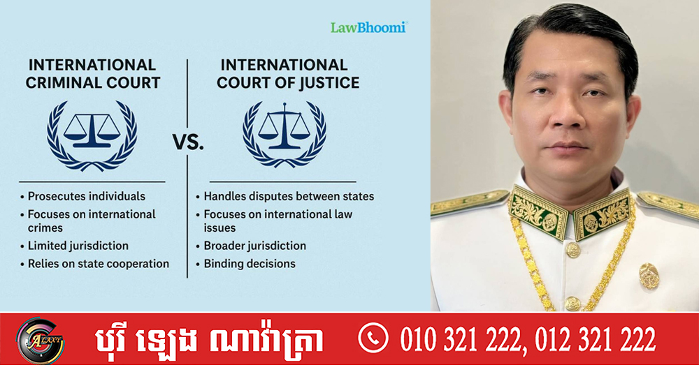 (ភ្នំពេញ)៖ នៅក្នុងបរិបទនៃការវិវត្តន៍ស្ថានការណ៍អន្តរជាតិ និងតំបន់ថ្មីៗនេះ មានការលើកឡើងជាច្រើនអំពីតុលាការអន្តរជាតិ។ ដើម្បីជាមូលដ្ឋាននៃការពិចារណាប្រកបដោយវិចារណញ្ញាណ និងចំណេះដឹងច្បាប់ លោក ផាន់ វណ្ណរ័ត្ន អគ្គព្រះរាជអាជ្ញារង នៃតុលាការកំពូល បានធ្វើការបកស្រាយលម្អិតអំពីស្ថាប័នកំពូលទាំងពីរនេះដូចតទៅ៖