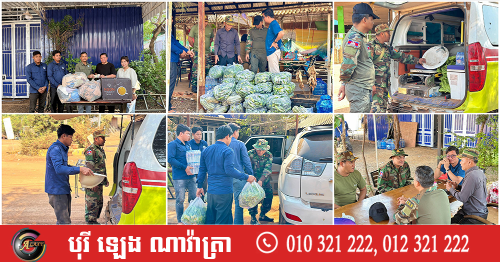 សូមជម្រាបជូនថា ចាប់តាំងពីមានការវាយប្រហារឈ្លានពាន ពីយោធាថៃមកលើដែនអធិបតេយ្យកម្ពុជា, អ្នកឧកញ៉ា ឡេង ណាវ៉ាត្រា បានចាត់ក្រុមការងារសហព័ន្ធយុវជនបូជាការពារយុត្តិធម៌ រៀបចំស្បៀងអាហារ និងសម្ភារៈប្រើប្រាស់ ដែលក្នុងនោះក៏មានបងប្អូនប្រជាពលរដ្ឋចូលរួមជាមួយក្រុមយុវជនផងដែរ ដើម្បីនាំយកទៅប្រគល់ជូនវីរកងទ័ពជួរមុខ និងជនភៀសសឹក ដើម្បីចូលរួមជាមួយរាជរដ្ឋាភិបាល ក្នុងការជួយសម្រាលទុក្ខលំបាករបស់ប្រជាពលរដ្ឋ៕