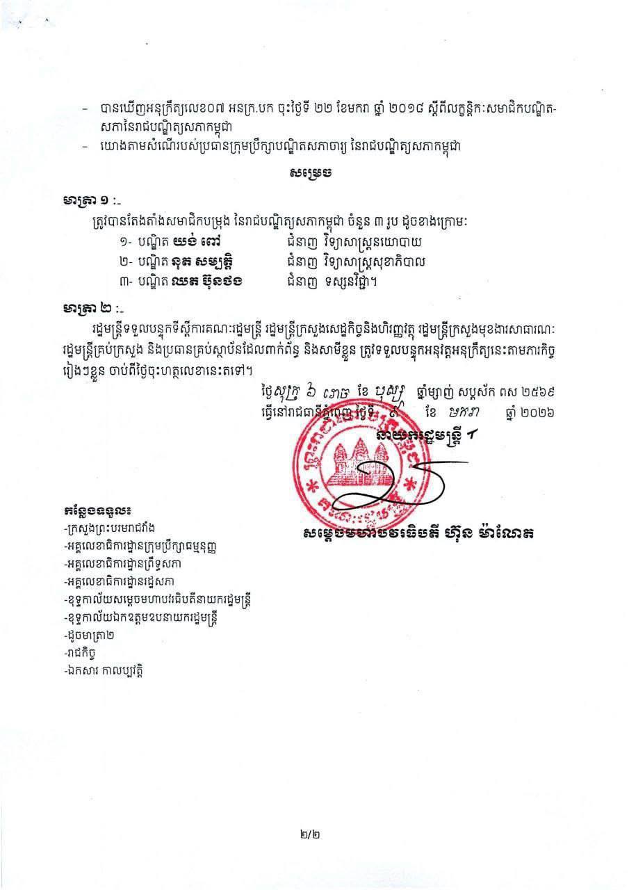 សម្តេចបវរធិបតី ហ៊ុន ម៉ាណែត ចេញអនុក្រឹត្យតែងតាំងសមាជិកបម្រុង នៃរាជបណ្ឌិត្យសភាកម្ពុជាចំនួន ៣រូប