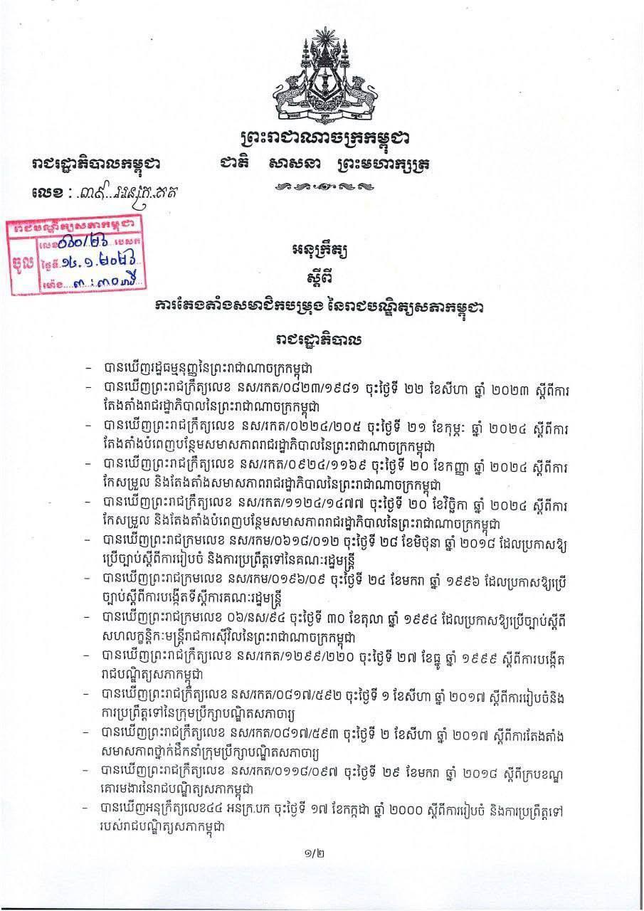 (ភ្នំពេញ)៖ សម្តេចបវរធិបតី ហ៊ុន ម៉ាណែត នាយករដ្ឋមន្ត្រីនៃកម្ពុជា បានចេញអនុក្រឹត្យតែងតាំងសមាជិកបម្រុង នៃរាជបណ្ឌិត្យសភាកម្ពុជាចំនួន ៣រូប។
