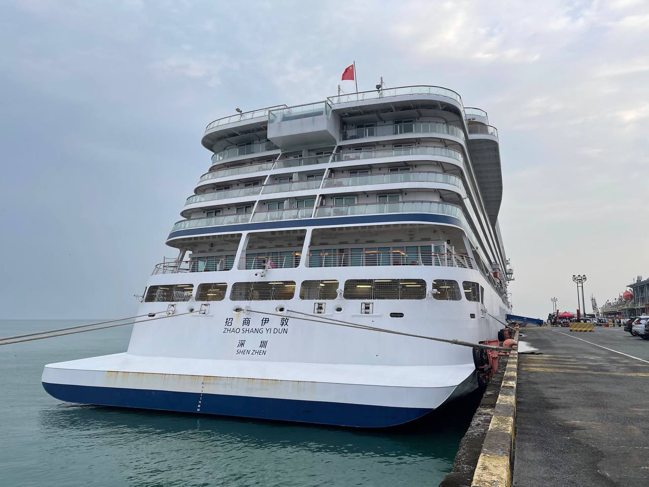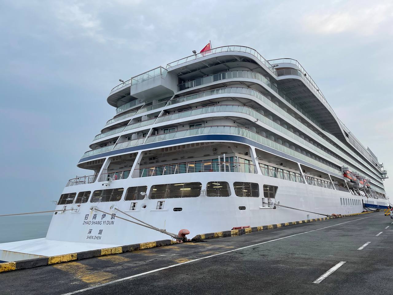 នាវាទេសចរណ៍ឈ្មោះ ZHAO SHANG YI DUN សញ្ជាតិ CHINA មានប្រវែងបណ្តោយ ២៨៨.៣០ម៉ែត្រ, ប្រវែងទទឹង ២៨.៨០ម៉ែត្រ, ជម្រៅទឹក ៦.៦៥ម៉ែត្រ។ នាវាទេសចរណ៍នេះផ្ទុកភ្ញៀវទេសចរចំនួន ២៦៦នាក់ ស្រី ១៤២នាក់, មាន ១៨សញ្ជាតិ និងនាវិកចំនួន ៣៣០នាក់/ស្រី ៩៥នាក់, មាន ០១សញ្ជាតិ ចំនួនភ្ញៀវដែលមានច្រើនជាងគេជប៉ុន ១៧៤នាក់។