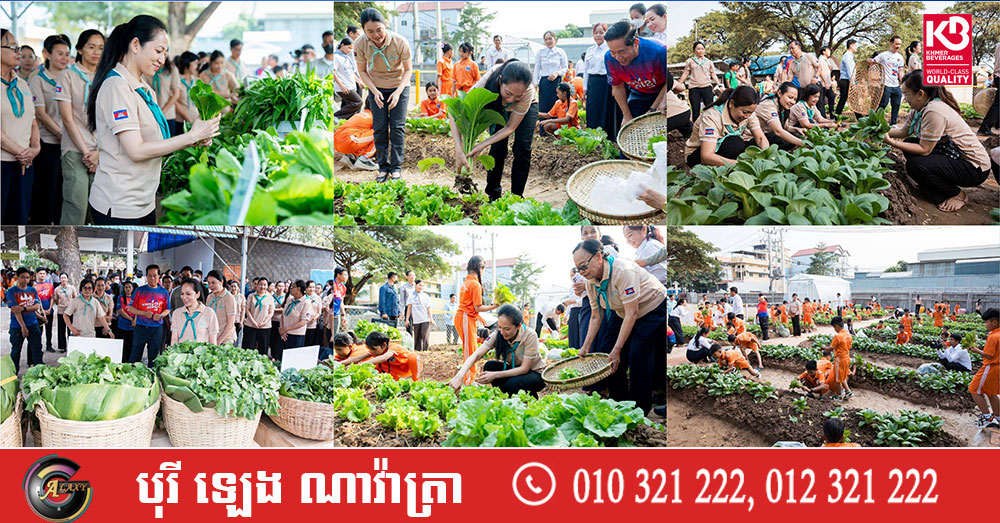 លោកជំទាវបណ្ឌិត ពេជ ចន្ទមុន្នី ហ៊ុនម៉ាណែត អញ្ជើញប្រមូលកសិផលដែលកើតចេញពីចលនា «យើងរួមគ្នាដើម្បីជាតិ» នៅសាលាបឋមសិក្សាភ្នំពេញថ្មី ខណ្ឌសែនសុខ