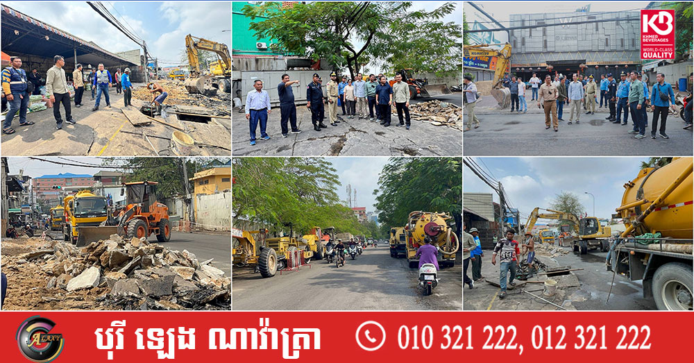រដ្ឋបាលរាជធានីភ្នំពេញ ចាប់ផ្តើមបើកការដ្ឋានជួសជុលកែលម្អហេដ្ឋារចនាសម្ព័ន្ធ ស្តារប្រព័ន្ឋលូ នៅលេីផ្លូវពាក់ព័ន្ធនានាជុំវិញផ្សារដើមគរ