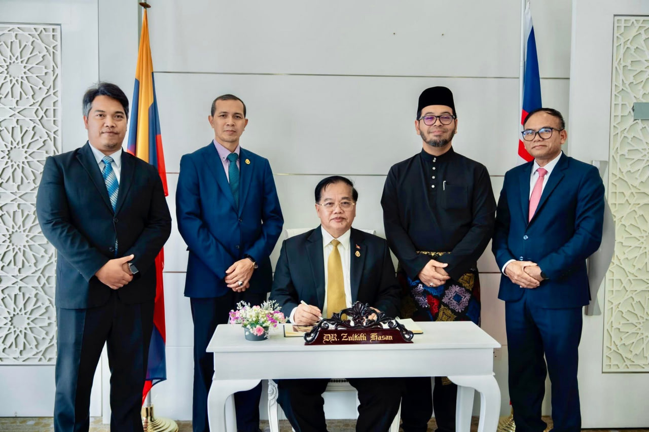 (ម៉ាឡេស៉ី)៖ លោកបណ្ឌិត អូស្មាន ហាស្សាន់ ទេសរដ្ឋមន្ត្រីទទួលបន្ទុកបេសកកម្មពិសេស នៅថ្ងៃទី១៦ ខែមករា ឆ្នាំ២០២៦ បានជួបពិភាក្សាការងារជាមួយលោក Senator Dr. Zulkifli Hasan រដ្ឋមន្ត្រីទីស្តីការនាយករដ្ឋមន្ត្រី ទទួលបន្ទុកកិច្ចការសាសនាម៉ាឡេស៊ី ដើម្បីបន្តពង្រឹង និងពង្រីកកិច្ចសហប្រតិបត្តិការវិស័យហាឡាល បណ្តុះបណ្តាលគរុកោសល្យគ្រូបង្រៀនខ្មែរឥស្លាម ការអភិវឌ្ឍន៍ធនធានមនុស្ស ការផ្តល់អាហារូបករណ៍សម្រាប់និស្សិតកម្ពុជាទៅបន្តការសិក្សានៅម៉ាឡេស៊ី និងការគ្រប់គ្រងវ៉ាកាហ្វ ហ្សាកាត់ និងហាជី្ជ។