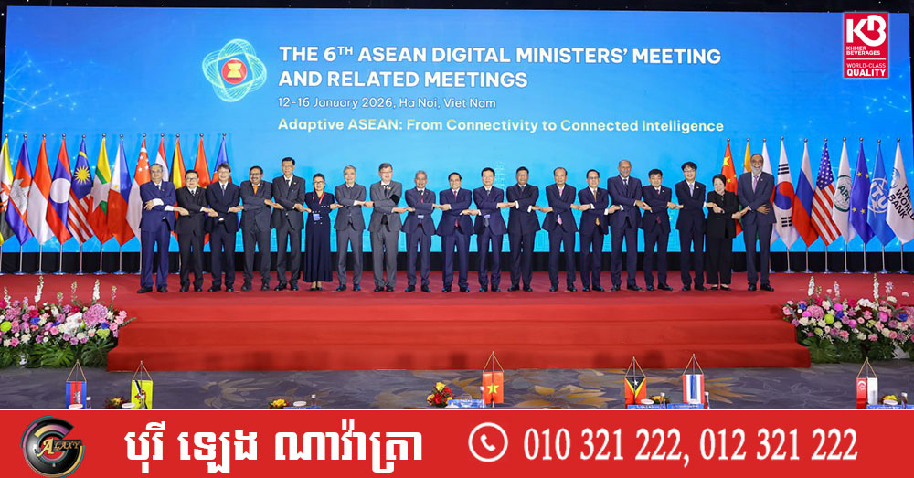 (ហាណូយ)៖ នៅថ្ងៃទី១៥-១៦ ខែមករា ឆ្នាំ២០២៦ លោក ជា វ៉ាន់ដេត រដ្ឋមន្ត្រីក្រសួងប្រៃសណីយ៍ និងទូរគមនាគមន៍ បានដឹកនាំគណៈប្រតិភូក្រសួងចូលរួមកិច្ចប្រជុំរដ្ឋមន្ត្រីឌីជីថលអាស៊ានលើកទី៦ (6th ASEAN Digital Ministers’ Meeting - ADGMIN) នៅសាធារណរដ្ឋសង្គមនិយមវៀតណាម ដោយមានការចូលរួមពីរដ្ឋមន្រ្តីឌីជីថលរបស់រដ្ឋសមាជិកអាស៊ាន និងដៃគូអាស៊ាន ដែលរួមមានសាធារណរដ្ឋកូរ៉េ ចិន ជប៉ុន ឥណ្ឌា សហរដ្ឋអាមេរិក និងសហភាពទូរគមនាគមន៍អន្តរជាតិ។