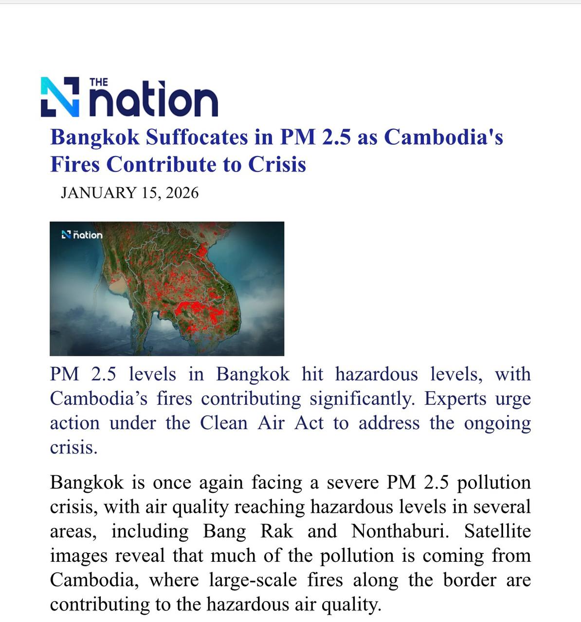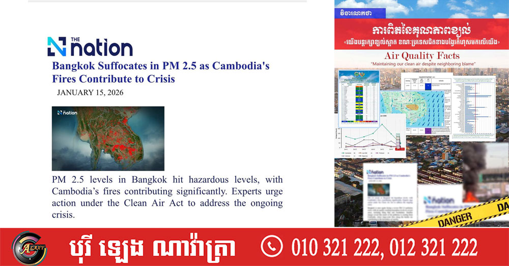 - ហ៊ានទទួលស្គាល់ការពិត៖ សូមបញ្ឈប់ការទម្លាក់កំហុសមកលើប្រទេសកម្ពុជាហើយងាកមកពិនិត្យប្រភពបំពុលក្នុងស្រុករបស់ខ្លួន (រោងចក្រ ភ្លើងឆេះព្រៃ និងការបំភាយឧស្ម័ន) ដោយភាពត្រឹមត្រូវតាមបច្ចេកទេស