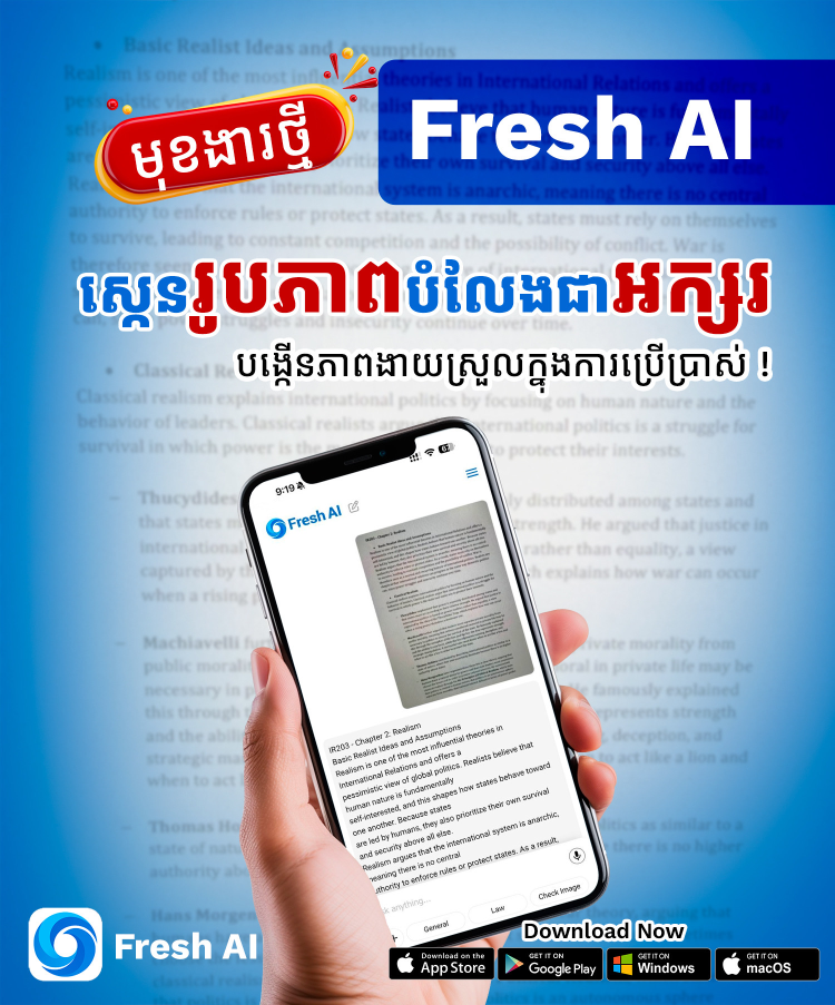 Fresh AI ជំនួយការឆ្លាតវៃរបស់កម្ពុជា ! សួរអ្វីៗគ្រប់យ៉ាងដែលអ្នកចង់ដឹង.