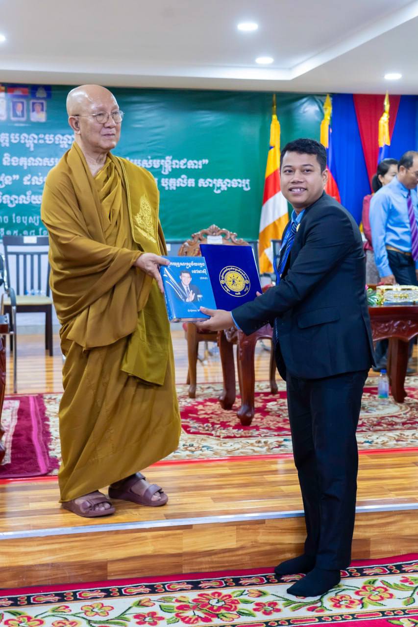 ទន្ទឹមនឹងនេះ លោកក៏បានបង្ហាញក្តីសង្ឃឹមយ៉ាងមុតមាំថា សិក្ខាកាមនឹងយកចំណេះដឹងដែលទទួលបានទៅអនុវត្តជាក់ស្តែងក្នុងការងារ ដើម្បីបង្កើតលទ្ធផលល្អ និងប្រសិទ្ធភាពខ្ពស់។ បន្ថែមពីនេះ លោកក៏បានថ្វាយនូវសៀវភៅចំណងជើង «អ្នកយុទ្ធសាស្ត្រវ័យក្មេងនៅអាស៊ី» ភាគទី២ និងទី៣ ថ្វាយសម្តេចជាអម្ចាស់សម្រាប់តម្កល់ទុកក្នុងបណ្ណាល័យតេជោសន្តិភាព ដើម្បីជាប្រយោជន៍ដល់សមណនិស្សិត និស្សិត និងអ្នកស្រាវជ្រាវ ព្រមទាំងបានជូនសៀវភៅដល់សិក្ខាកាមទាំងអស់ផងដែរ៕