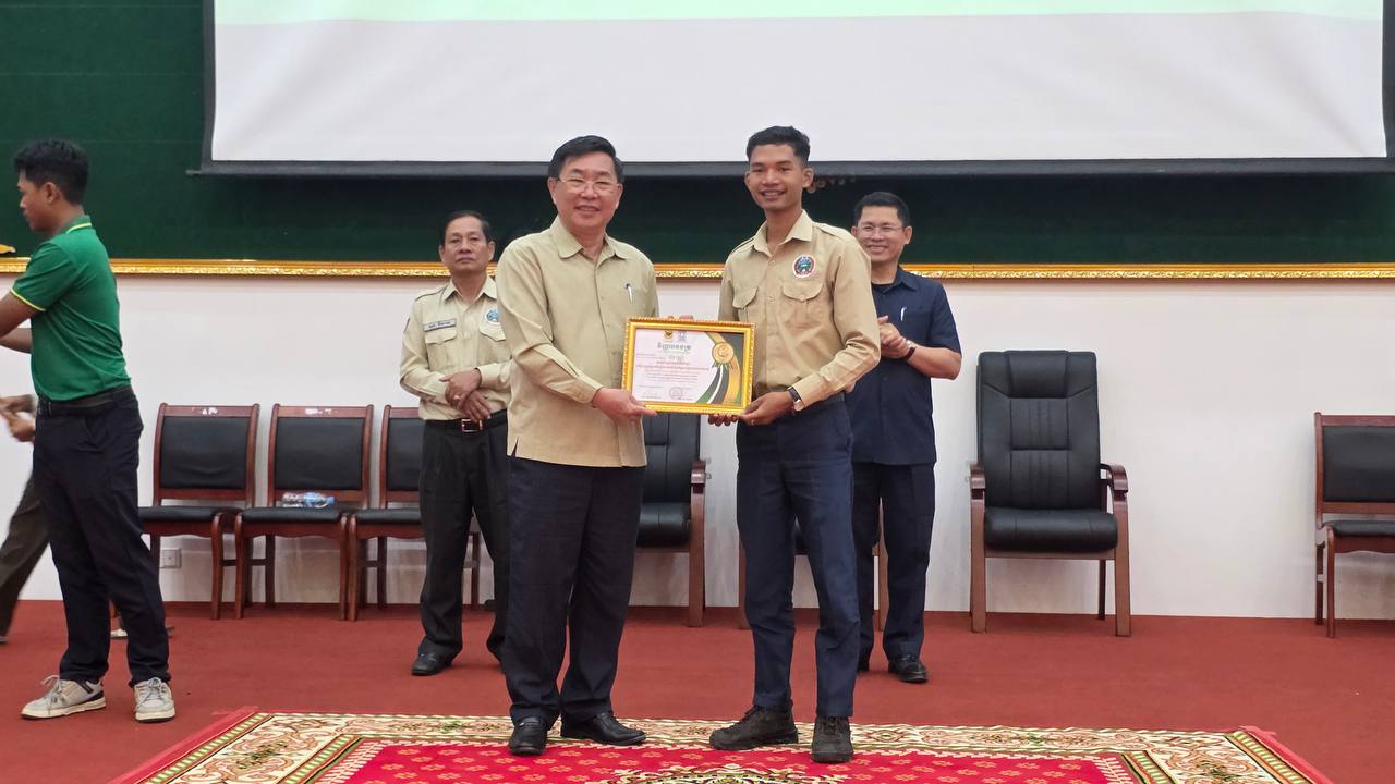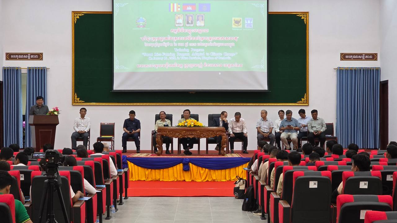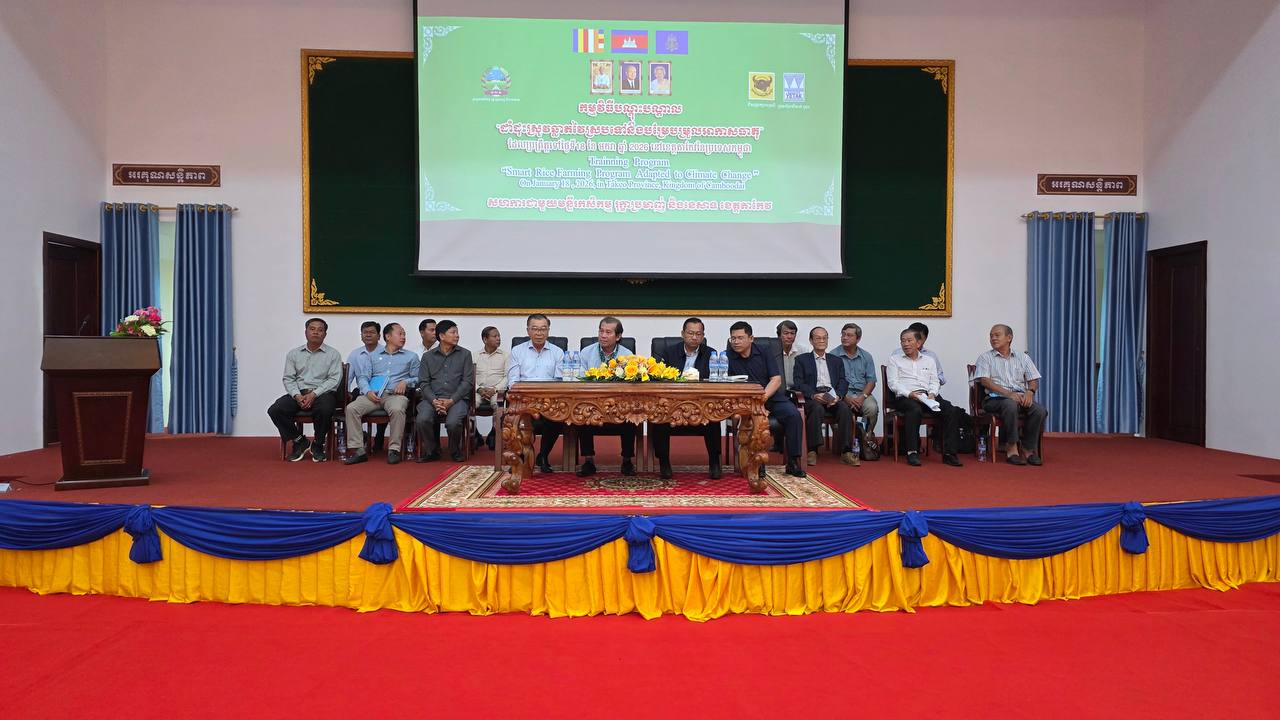 (តាកែវ)៖ មន្ទីរកសិកម្ម រុក្ខាប្រមាញ់ និងនេសាទ ខេត្តតាកែវ បានសហការជាមួយក្រុមហ៊ុនយី តាក់ គ្រុប និងក្រុមហ៊ុនភាគហ៊ុនជីប៊ិញឌៀន រៀបចំកម្មវិធីវគ្គបណ្តុះបណ្តាល «ដាំដុះស្រូវឆ្លាតវៃស្របទៅនឹងបម្រែបម្រួលអាកាសធាតុ» ក្រោមអធិបតីភាព លោក តូច ប៊ុនហួរ រដ្ឋលេខាធិការក្រសួងកសិកម្ម រុក្ខាប្រមាញ់ និងនេសាទ និងលោក ទុយ សុភ័ក្រ្ដ អភិបាលរងខេត្តតាកែវ នាថ្ងៃទី១៨ ខែមករា ឆ្នាំ២០២៦។