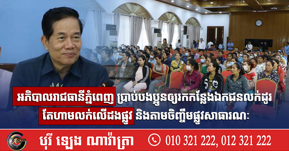 អភិបាលរាជធានីភ្នំពេញ ប្រាប់បងប្អូនឲ្យរកកន្លែងឯកជនលក់ដូរ តែហាមលក់លើដងផ្លូវ និងតាមចិញ្ចឹមផ្លូវសាធារណៈ