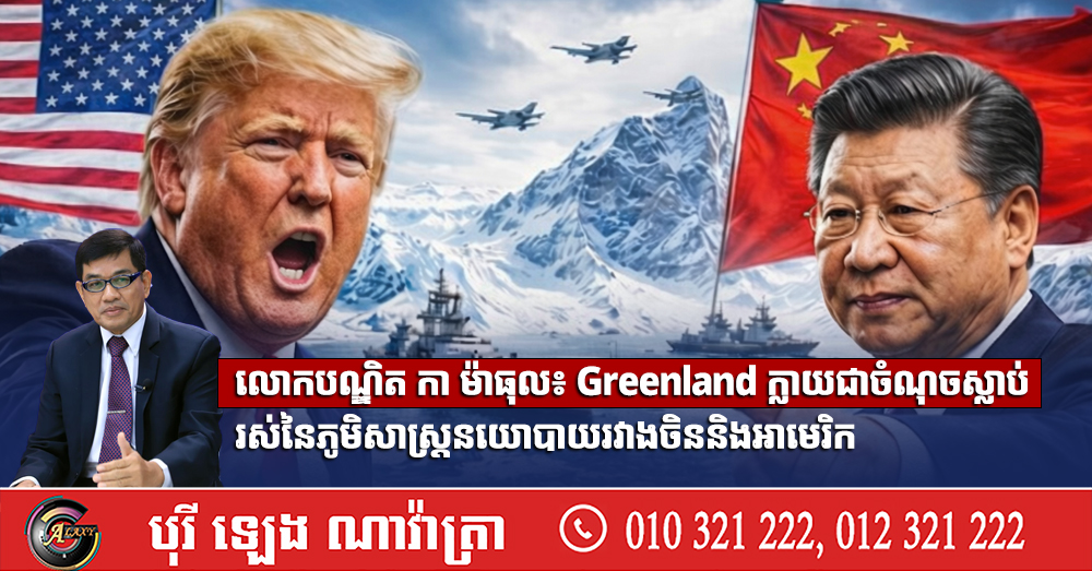 (ភ្នំពេញ)៖ លោកបណ្ឌិត កា ម៉ាធុល អ្នកជំនាញវិទ្យាសាស្រ្តនយោបាយ បានអះអាងថានៅពេលនេះ Greenland បានក្លាយទៅជាចំណុចស្លាប់រស់រវាងចិន និងអាមេរិក បន្ទាប់ពីអាមេរិក មិនអាចឲ្យចិន អាចមានមូលដ្ឋានឈជើង នៅក្បែលរបងផ្ទះរបស់ខ្លួនឡើយ ចំណែកឯចិន វិញនៅពេលនេះក៏នៅតែ Greenland ប៉ុណ្ណោះដែលជាទីតាំងយុទ្ធសាស្រ្តភូមិសាស្រ្ត និងសេដ្ឋកិច្ចដ៏សំខាន់ បន្ទាប់ពីចិន ត្រូវបានអាមេរិក កាត់ផ្ដាច់តំបន់យុទ្ធសាស្រ្តសំខាន់ៗរបស់ខ្លួនស្ទើទាំងស្រុងទៅហើយ។ ការបញ្ជាក់របស់លោកបណ្ឌិត បានធ្វើឡើងនៅក្នុងកិច្ចពិភាក្សា Fresh Talk នាថ្ងៃសៅរ៍សប្ដាហ៍កន្លងទៅ។