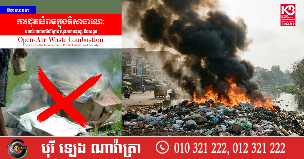 (ភ្នំពេញ)៖ ការដុតសំរាម ឬកាកសំណល់ក្នុងទីសាធារណៈ ជាបញ្ហាដែលកើតមានជាញឹកញាប់នៅក្នុងសហគមន៍ជាច្រើន ជាពិសេសនៅតំបន់ទីក្រុង និងជនបទដែលប្រព័ន្ធគ្រប់គ្រងសំរាមមិនទាន់មានប្រសិទ្ធភាព។ ទោះបីជាការដុតសំរាម ការដុតភ្លើងផ្សេងៗ ការដុតជញ្ជ្រាំងស្រូវ ឬការដុតព្រៃ ត្រូវបានមើលថាជាវិធីងាយស្រួល និងឆាប់រហ័សក្នុងការបំផ្លាញកាកសំណល់ក៏ដោយ ប៉ុន្តែវាបង្កបង្កហានិភ័យខ្ពស់ទៅលើបរិស្ថាន សុខភាពមនុស្ស និងសង្គមទាំងមូល។