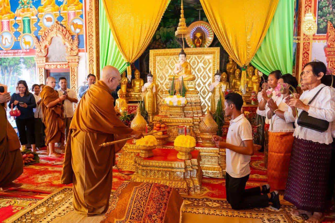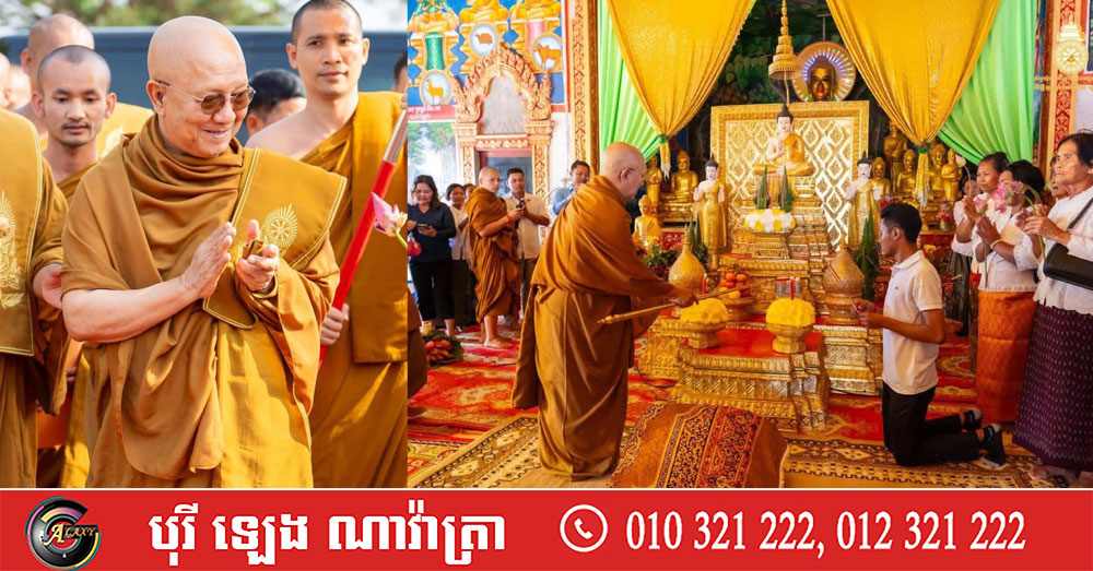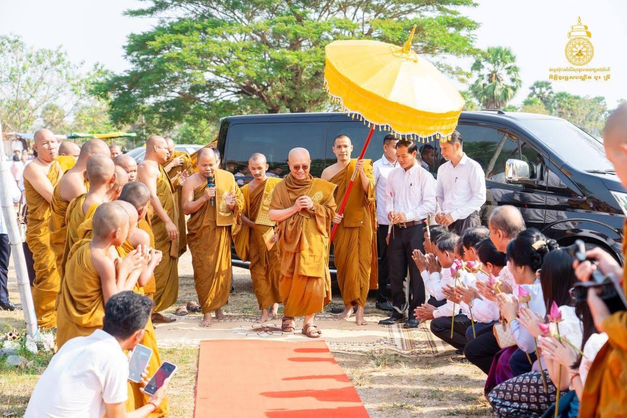 (ភ្នំពេញ)៖ សម្ដេចព្រះអភិសិរីសុគន្ធាមហាសង្ឃរាជាធិបតី កិត្តិឧទ្ទេសបណ្ឌិត បួរ គ្រី សម្តេចព្រះមហាសង្ឃរាជ នៃគណៈធម្មយុត្តិកនិកាយ នៃព្រះរាជាណាចក្រកម្ពុជា និងជាសម្ដេចព្រះប្រធានគណះសង្ឃនាយក នៃគណៈធម្មយុត្តិកនិកាយ នៃព្រះរាជាណាចក្រកម្ពុជា នាថ្ងៃអាទិត្យ ទី១៨ ខែមករា ឆ្នាំ២០២៦ ស្ដេចយាងជាព្រះរាជាធិបតីភាពដ៏ខ្ពង់ខ្ពស់ ក្នុងពិធីបុណ្យពុទ្ធាភិសេក និងឆ្លងកុដិ វត្តបញ្ចវគ្គីយ៍ (វត្តស្មៅ) ស្ថិតនៅភូមិក្តៅ ឃុំពេជសារ ស្រុកកោះអណ្តែត ខេត្តតាកែវ៕