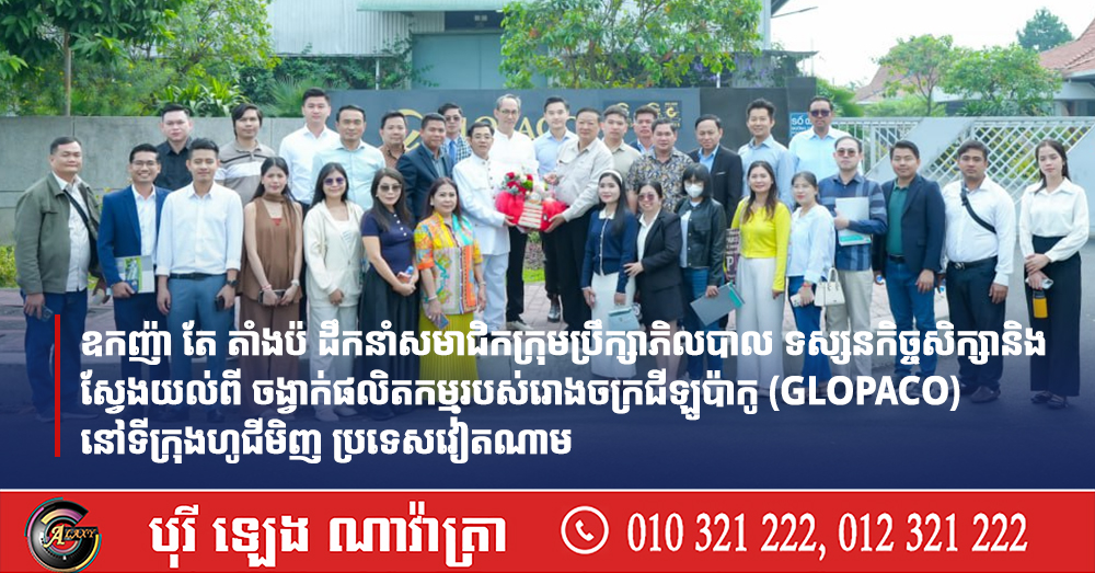 ឧកញ៉ា តែ តាំងប៉ ដឹកនាំសមាជិកក្រុមប្រឹក្សាភិលបាល ទស្សនកិច្ចសិក្សានិងស្វែងយល់ពី ចង្វាក់ផលិតកម្មរបស់រោងចក្រជីឡូប៉ាកូ (GLOPACO) នៅទីក្រុងហូជីមិញ ប្រទេសវៀតណាម