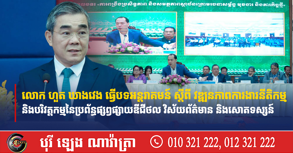 លោក ហួត ឃាងវេង ធ្វើបទអន្តរាគមន៍ ស្តីពី វឌ្ឍនភាពការងារនីតិកម្ម និងបរិវត្តកម្មនៃប្រព័ន្ធផ្សព្វផ្សាយឌីជីថល វិស័យព័ត៌មាន និងសោតទស្សន៍