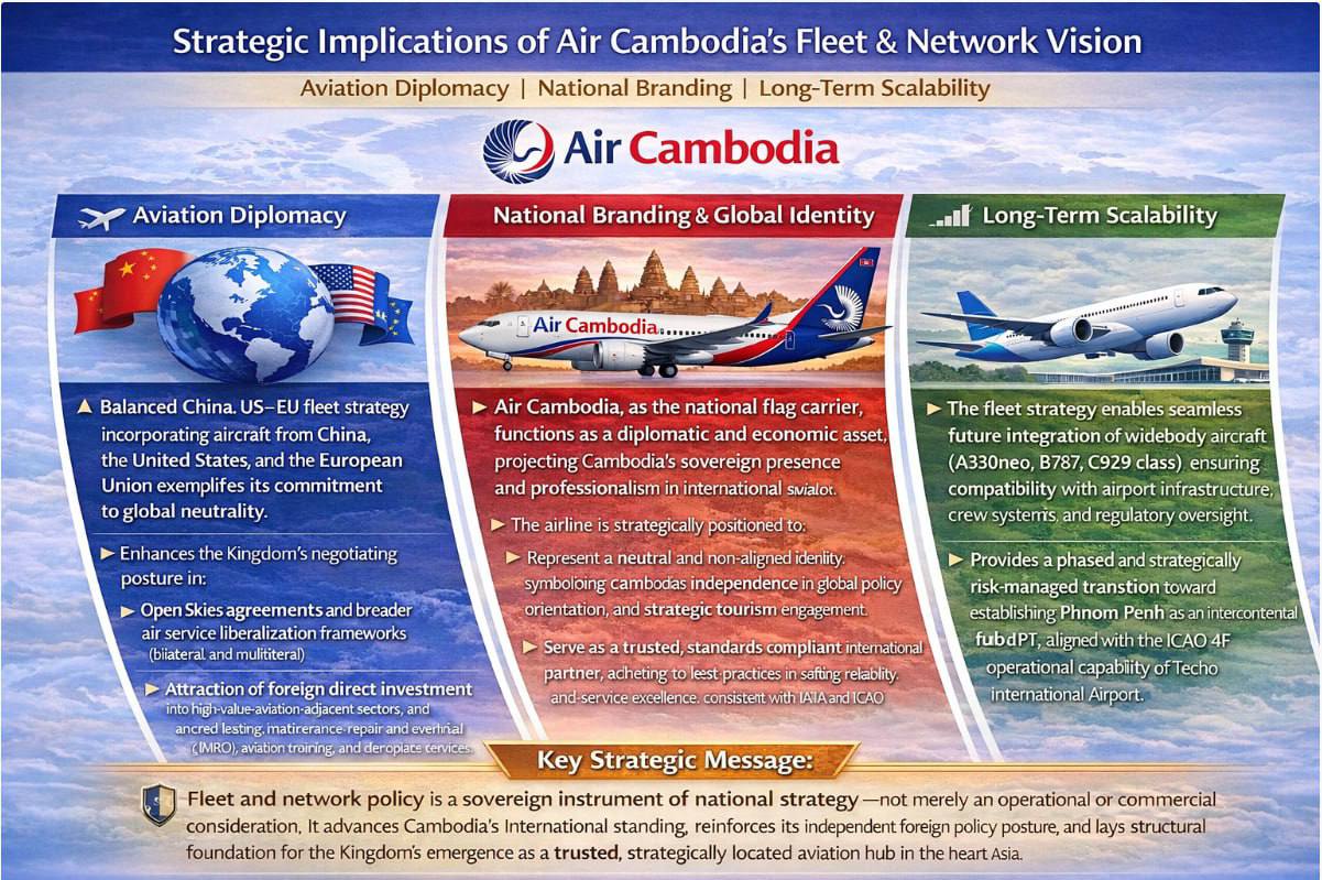 លោក ស៊ីន ចាន់សេរីវុត្ថា រដ្ឋលេខធិការ និងជាអ្នកនាំពាក្យរដ្ឋលេខាធិការដ្ឋានអាកាសចរណ៍ស៊ីវិលកម្ពុជា បានលើកឡើងថា ការប្រើប្រាស់ស្លាកសញ្ញាថ្មី និងប្រភេទយន្តហោះចម្រុះថ្មីៗ ដែលជាផលិតរបស់ អាមេរិក, អឺរ៉ុប ចិន ទៅក្នុងប្រតិបត្តិរបស់ខ្លួន គឺជាការរក្សានូវអធិបតេយ្យ និងតុល្យភាពរបស់ក្រុមហ៊ុនអាកាសចរណ៍ជាតិកម្ពុជា។ ជាមួយគ្នាវាបានបញ្ជាក់ពីជំហរជាអន្តរជាតិ របស់ប្រទេសកម្ពុជា និងពង្រឹងជំហរគោលនយោបាយជាតិ និងគោលនយោបាយការបរទេស ឯករាជ្យភាពជាតិ របស់ក្រុមហ៊ុនអាកាសចរណ៍ជាតិកម្ពុជា៕