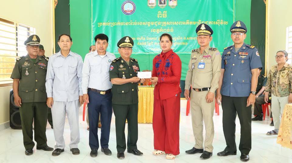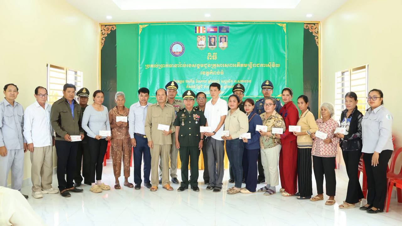 សមាគមអតីតយុទ្ធជន និងនិវត្តជនកម្ពុជាខេត្តកំពង់ធំ ប្រគល់ថវិកាធានារ៉ាប់រងសង្គមជិត១២១លានរៀល ជូនក្រុមគ្រួសារសពអតីតមន្ត្រីរាជការស៊ីវិល១៣គ្រួសារ