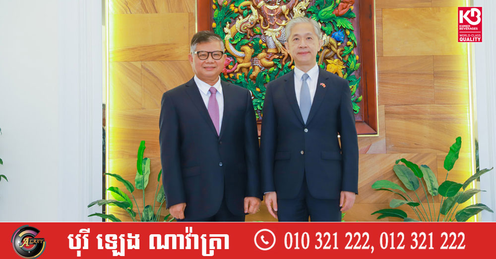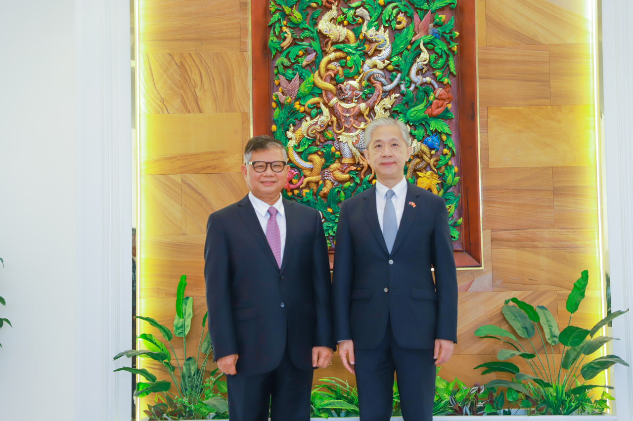(ភ្នំពេញ)៖ លោកសន្តិបណ្ឌិត ឆៃ ស៊ីណារិទ្ធ ទេសរដ្ឋមន្ត្រីទទួលបន្ទុកបេសកកម្មពិសេស និងជាប្រធានលេខាធិការដ្ឋានគណៈកម្មការប្រយុទ្ធប្រឆាំងការឆបោកតាមប្រព័ន្ធបច្ចេកវិទ្យា (គ.ប.ឆ.ប.) នៅព្រឹកថ្ងៃទី២០ ខែមករា ឆ្នាំ២០២៦ បានអនុញ្ញាតឱ្យលោក Wang Wenbin ឯកអគ្គរដ្ឋទូតនៃសាធារណរដ្ឋប្រជាមានិតចិន ចូលជួបសម្តែងការគួរសម និងពិភាក្សាការងារ។