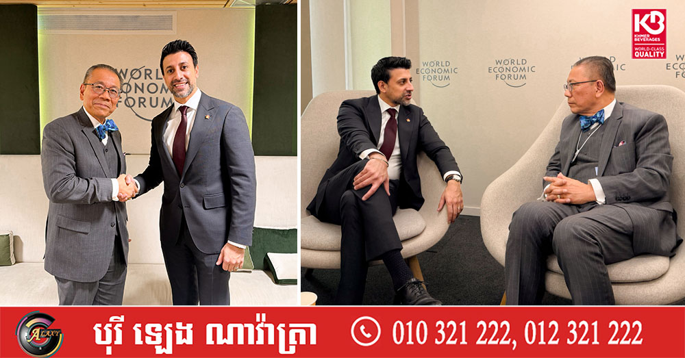 (ស្វីស)៖ សាស្ត្រាចារ្យបណ្ឌិតសភាចារ្យ សុក ស៊ីផាន់ណា ទេសរដ្ឋមន្ត្រីទទួលបន្ទុកបេសកកម្មពិសេស (វិស័យពាណិជ្ជកម្ម និងសេដ្ឋកិច្ចអន្តរជាតិ) និងជាប្រធានគណៈកម្មាធិការផ្តល់យោបល់លើគោលនយោបាយពាណិជ្ជកម្ម (គ.ផ.គ.ព.) នៅថ្ងៃទី២០ ខែមករា ឆ្នាំ២០២៦ បានជួបពិភាក្សាការងារជាមួយលោក Maninder Sidhu រដ្ឋមន្ត្រីពាណិជ្ជកម្មអន្តរជាតិនៃប្រទេសកាណាដា ក្នុងឱកាសចូលរួមវេទិកាសេដ្ឋកិច្ចពិភពលោក នៅទីក្រុងដាវ៉ូស សហព័ន្ធស្វីស។