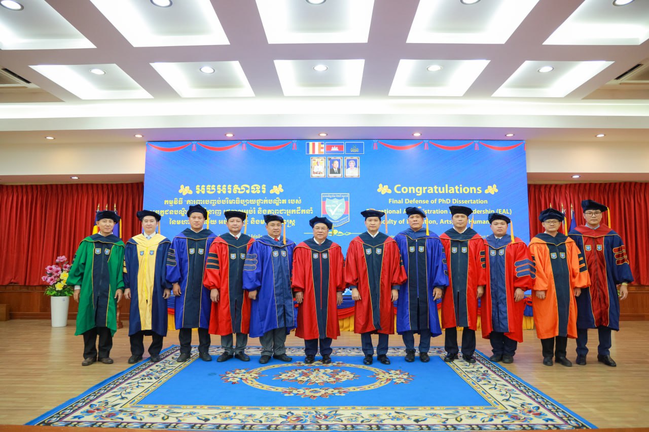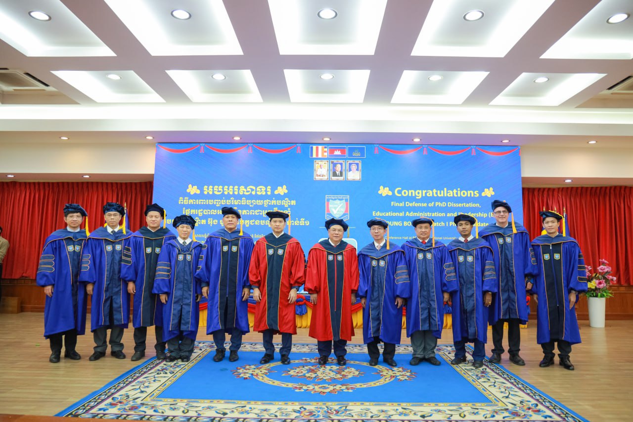 លោកបណ្ឌិត បានអបអរសាទរ និងប្រកាសអំពីលទ្ធផល ជាប់ជាផ្លូវការលើការវាយតម្លៃការការពារបញ្ចប់ថ្នាក់បណ្ឌិតរបស់បេក្ខជនបណ្ឌិត អ៊ុង បូរាត ព្រមទាំងបានបំពាក់ Graduation Gown ទទួលស្គាល់បណ្ឌិត ដែលបានជាប់ជាស្ថាពរ ចាប់ពីពេលនេះតទៅផងដែរ៕