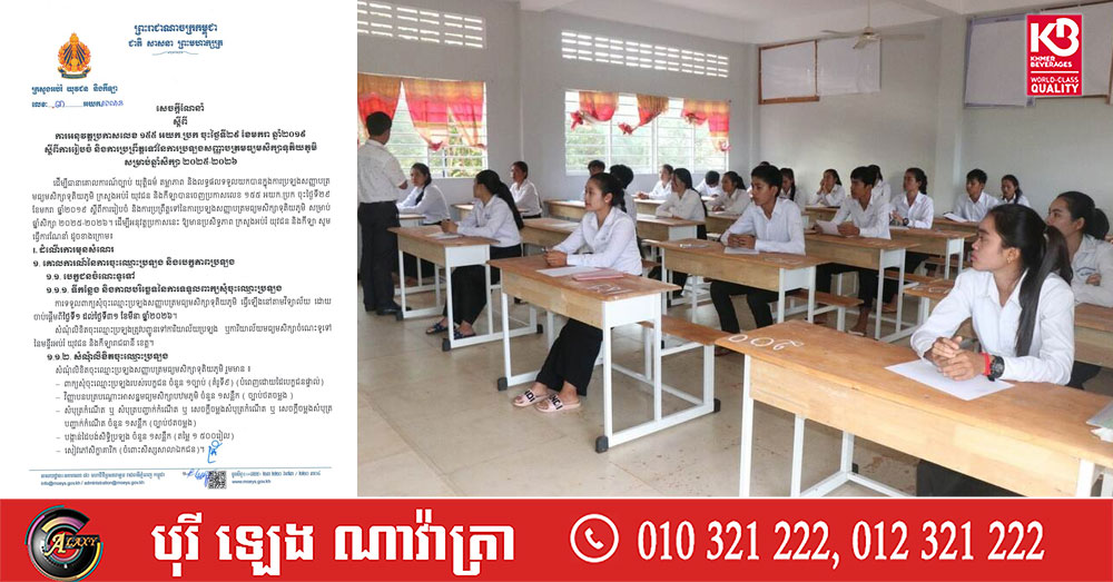 ក្រសួងអប់រំ ចេញសេចក្តីណែនាំស្តីពីការរៀបចំ និងការប្រព្រឹត្តទៅនៃការប្រឡងសញ្ញាបត្រមធ្យមសិក្សាទុតិយភូមិសម្រាប់ឆ្នាំសិក្សា ២០២៥-២០២៦