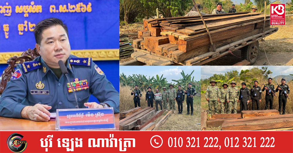 កម្លាំងអាវុធហត្ថចុះបង្ក្រាបទីតាំងសន្និធិឈើអារមួយកន្លែង នៅស្រុកឱរ៉ាល់ ខេត្តកំពង់ស្ពឺ