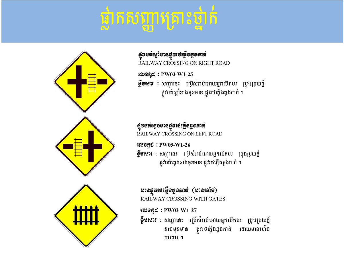 * ក្រសួងសាធារណការ និងដឹកជញ្ជូន ចាត់វិធានការភ្លាមៗក្នុងការលើកផ្លាកសញ្ញាព្រមានលើផ្លូវថ្នល់បន្ថែមឱ្យបានច្រើនជាងមុនអំពីផ្លូវរថភ្លើងឆ្លងកាត់នៅតាមទីតាំងចំណុចប្រសព្វសំខាន់ៗ ដើម្បីផ្ដល់សញ្ញា និងជូនដំណឹងដល់អ្នកធ្វើដំណើរតាមដងផ្លូវថ្នល់ឱ្យមានការប្រុងប្រយ័ត្នខ្ពស់។