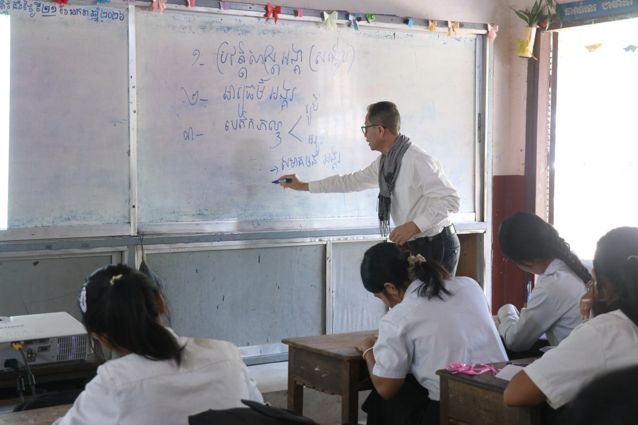 (សៀមរាប)៖ អាជ្ញាធរជាតិអប្សរា ដែលសហការជាមួយអង្គការមរតកវប្បធម៌ខ្មែរ (KHMER HERITAGE ORGANIZATION) ហៅកាត់ថា (KHO) នៅព្រឹកថ្ងៃទី២១ ខែមករា ឆ្នាំ២០២៦ បានបន្តបើកវគ្គបណ្តុះបណ្តាលស្ដីពី ការអប់រំបេតិកភណ្ឌដល់សិស្សានុសិស្សថ្នាក់ទី១១ នៃវិទ្យាល័យហ៊ុន សែន ប្រាសាទបាគង ចំនួន៥០នាក់។