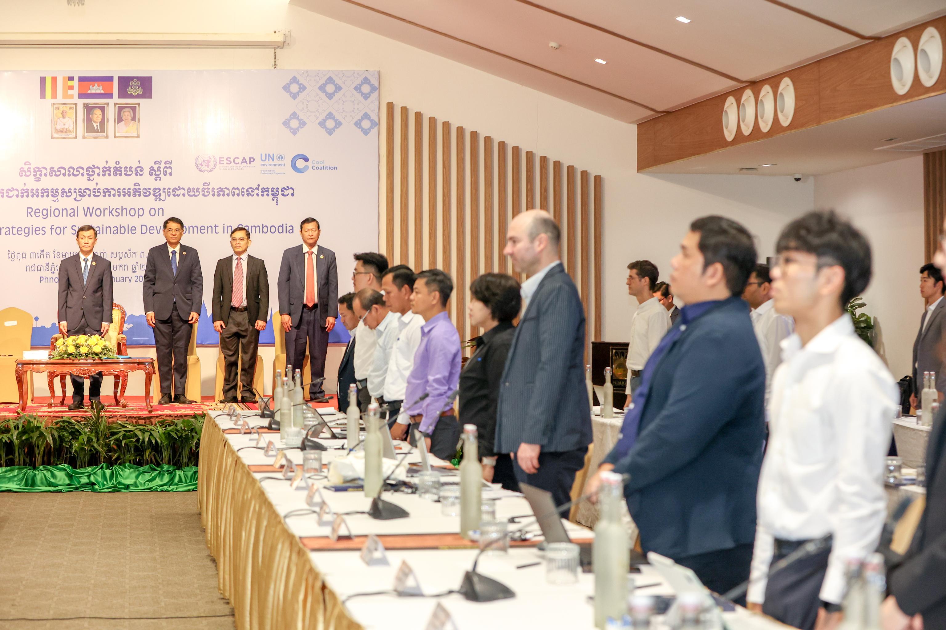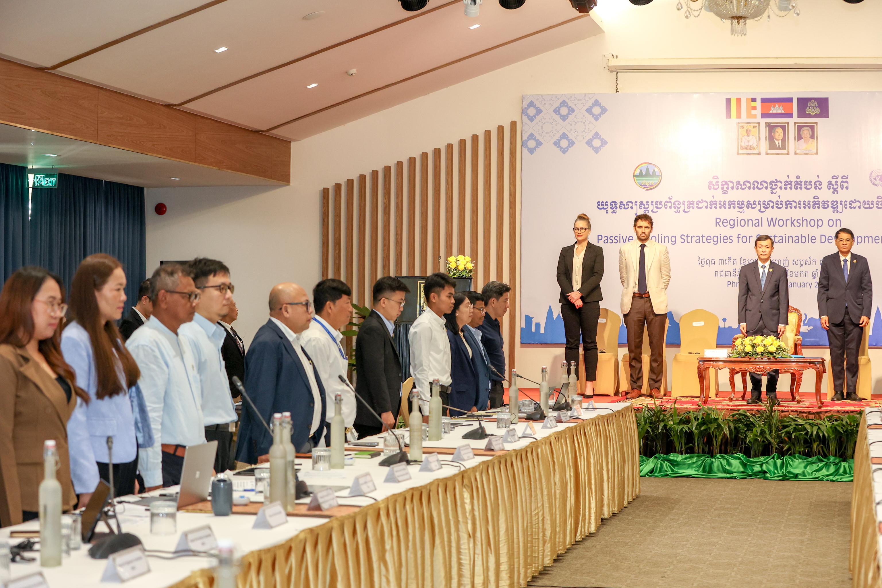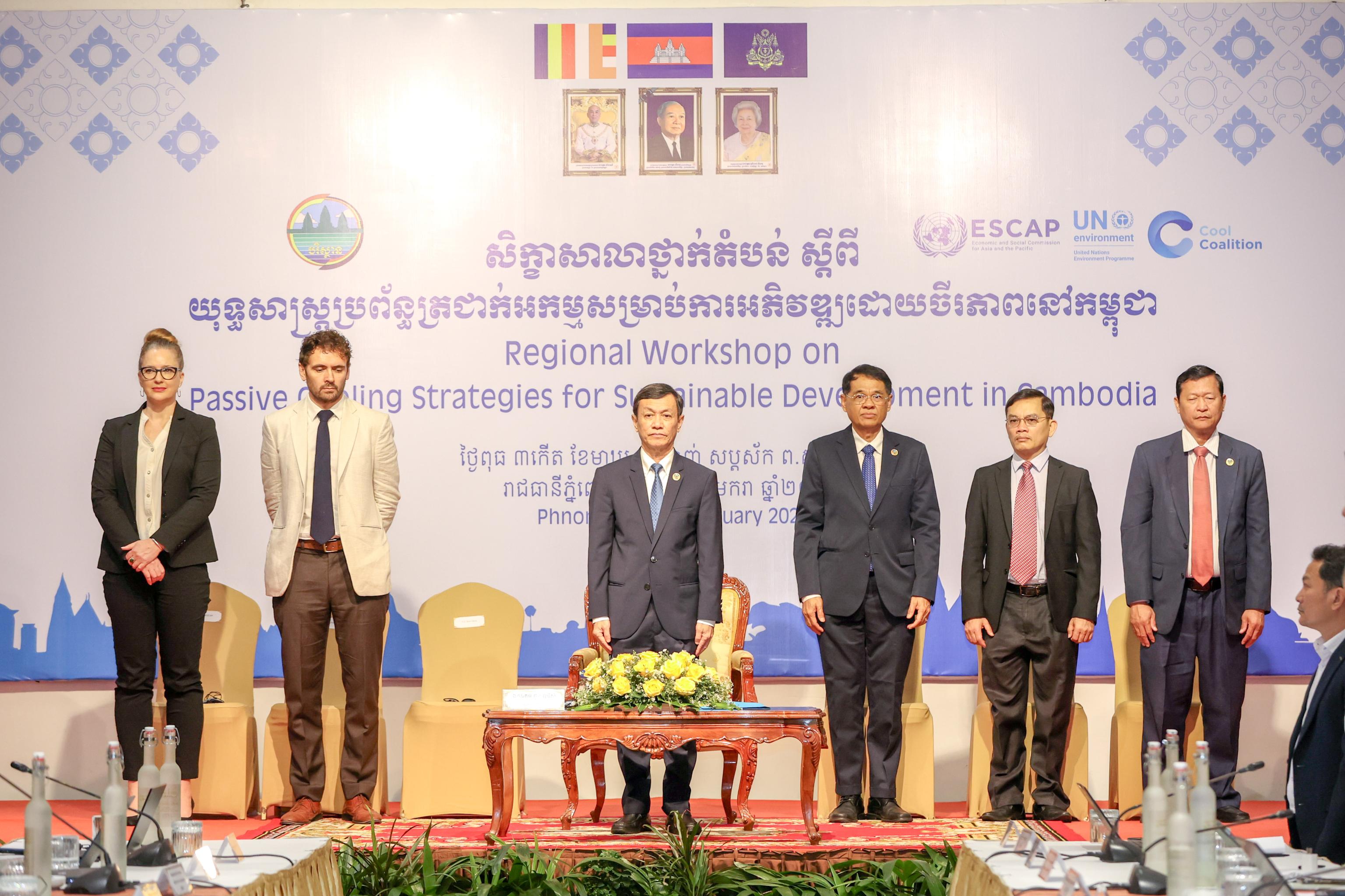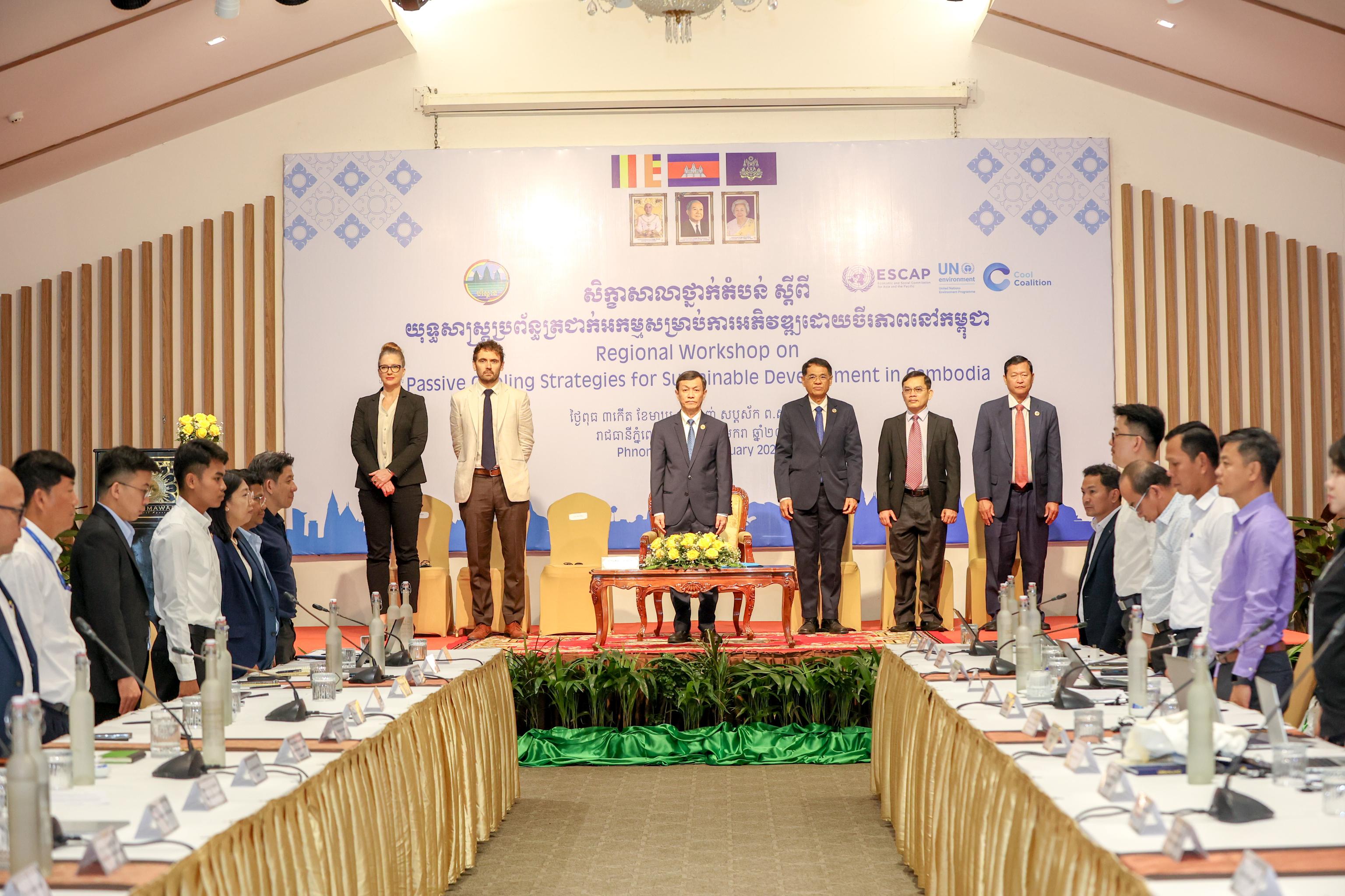 ក្រសួងបរិស្ថាន និងស្ថាប័នសាធារណៈពាក់ព័ន្ធរបស់កម្ពុជា និងអង្គការអន្តរជាតិ ដែលមានដូចជា៖ គណៈកម្មការសង្គម និងសេដ្ឋកិច្ច សម្រាប់អាស៊ី និងប៉ាស៊ីហ្វិក នៃអង្គការសហប្រជាជាតិ (UN-ESCAP) និងបរិស្ថានអង្គការសហប្រជាជាតិកម្មវិធី (UNEP) នៅថ្ងៃទី២១ ខែមករា ឆ្នាំ២០២៦នេះ បានជួបពិភាក្សាគ្នា ក្នុងសិក្ខាសាលាថ្នាក់តំបន់ស្តីពី«ការរៀបចំយុទ្ធសាស្ត្រប្រព័ន្ធត្រជាក់អកម្ម សម្រាប់ការអភិវឌ្ឍដោយចីរភាពនៅកម្ពុជា» ក្នុងគោលបំណងជំរុញគោលនយោបាយ និងការដាក់បញ្ចូលការអនុវត្តការរចនាស្ថាបត្យកម្ម និងការរៀបចំទីក្រុង តាមរយៈការចនាអគារដែលមានលក្ខណៈលំហូខ្យល់ និងពន្លឺគ្រប់គ្រាន់ រួមទាំងការជ្រើសរើសប្រភេទសម្ភារបំពាក់ក្នុងអគារសន្សំសំចៃអគ្គិសនី បូករួមទាំងការធ្វើឱ្យបរិស្ថានជុំវិញអគារមានភាពបៃតង កាត់បន្ថយការប្រើប្រាស់ម៉ាស៊ីនត្រជាក់ និងថាមពលអគ្គិសនី។