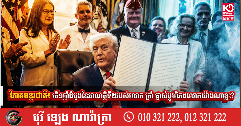 (វ៉ាស៊ីនតោន)៖ លោក ដូណាល់ ត្រាំ បានត្រឡប់មកដឹកនាំការិយាល័យពងក្រពើនៃសេតវិមានកាលពីមួយឆ្នាំមុន ក្នុងនាមជាប្រធានាធិបតីទី៤៧របស់សហរដ្ឋអាមេរិក បន្ទាប់ពីការធ្វើយុទ្ធនាការ ឃោសនារកសំឡេងឆ្នោតនៅក្រោមពាក្យស្លោក «ធ្វើឱ្យសហរដ្ឋអាមេរិកអស្ចារ្យម្ដងទៀត ឬ Make America Great Again»។ ក្នុងរយៈពេល ៣៦៥ថ្ងៃមកនេះ រដ្ឋបាលលោក ត្រាំ បានធ្វើការផ្លាស់ប្ដូរយ៉ាងសម្បើមនូវគោលនយោបាយសេដ្ឋកិច្ច ការទូត និងសង្គម ដែលបានផ្លាស់ប្ដូរទាំងសហរដ្ឋអាមេរិក និងពិភពលោក។ ដូច្នេះតើរយៈពេល១ឆ្នាំនៃអាណត្តិទី២របស់លោក ត្រាំ បានផ្លាស់ប្ដូរសហរដ្ឋអាមេរិក និងពិភពលោកយ៉ាងដូចម្ដេចខ្លះ?