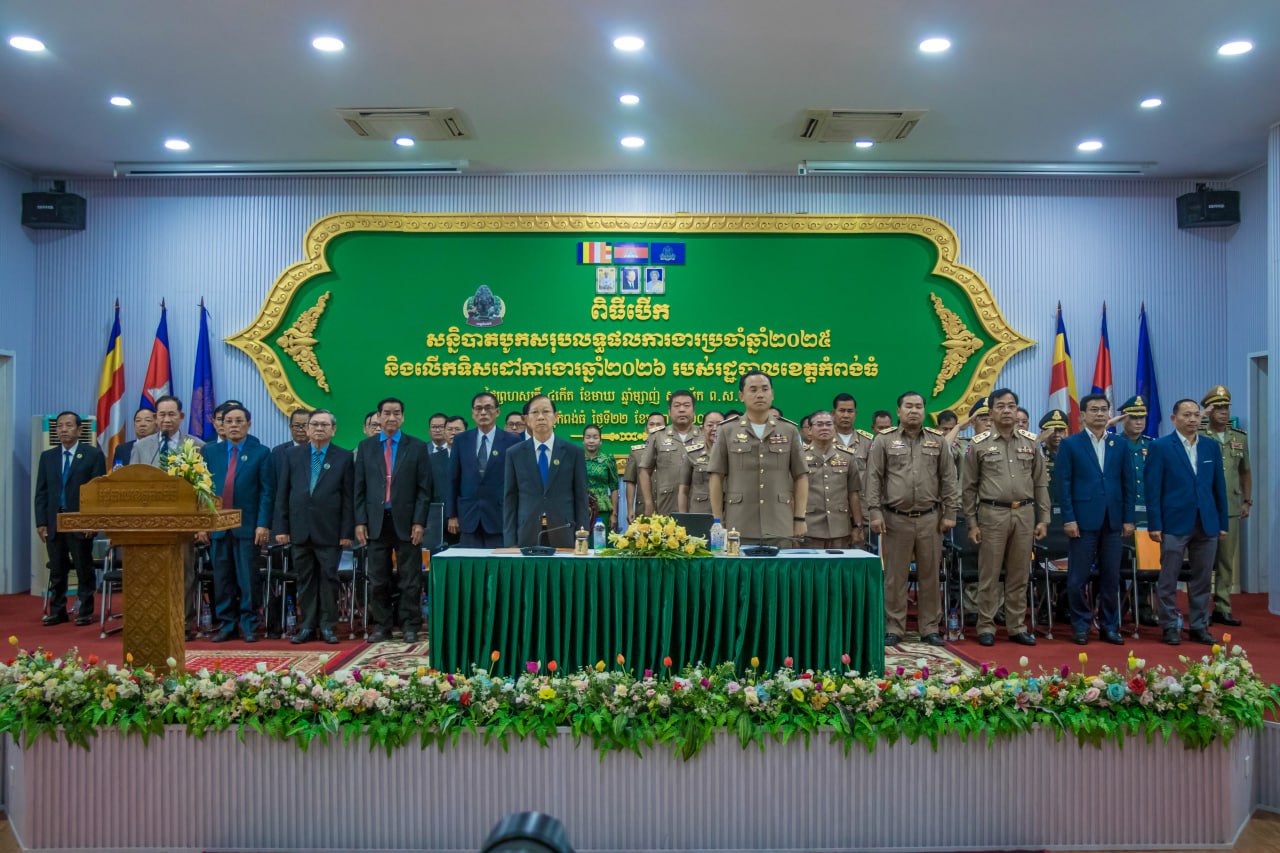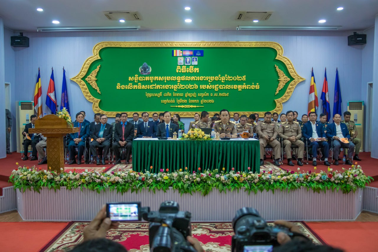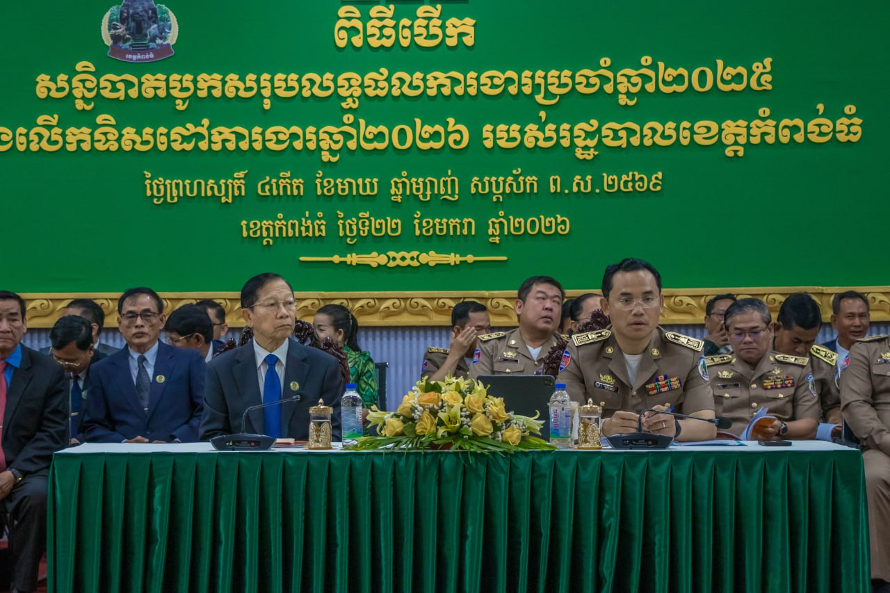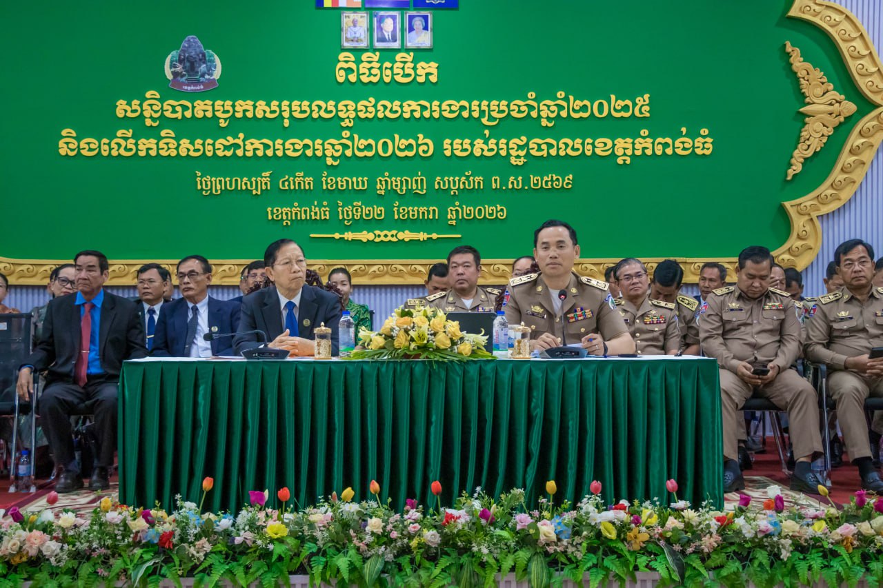 (កំពង់ធំ)៖ រដ្ឋបាលខេត្តកំពង់ធំ បានរៀបចំពិធីបើកសន្និបាតបូកសរុបលទ្ធផលការងារប្រចាំឆ្នាំ២០២៥ និងលើកទិសដៅការងារឆ្នាំ២០២៦ របស់រដ្ឋបាលខេត្ត ក្រោមអធិបតីភាពលោក ដៀប ពីរី ប្រធានក្រុមប្រឹក្សាខេត្ត និងលោក នួន ផារ័ត្ន អភិបាលខេត្តកំពង់ធំ នាថ្ងៃទី២២ ខែមករា ឆ្នាំ២០២៦ នៅសាលប្រជុំប្រាសាទសំបូរព្រៃគុក សាលាខេត្តកំពង់ធំ។