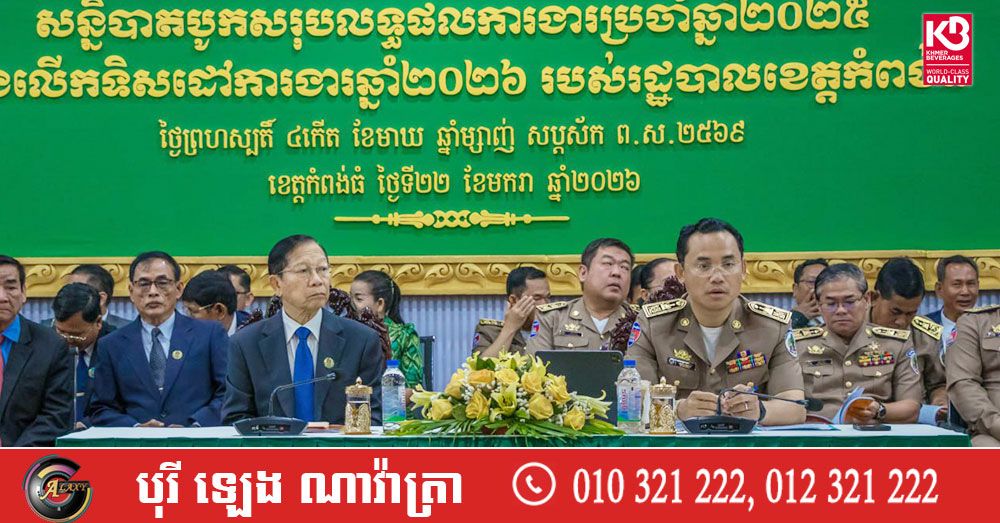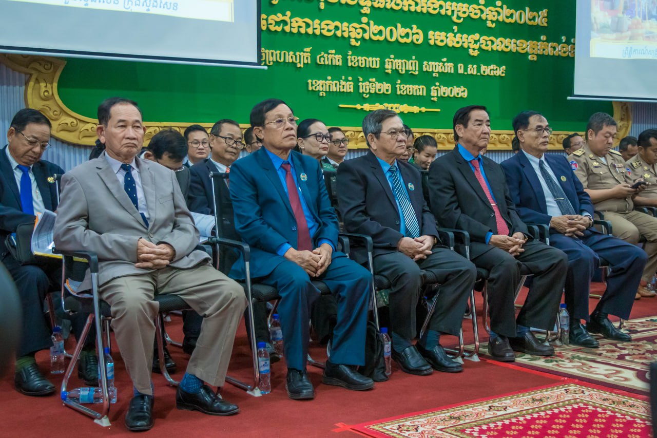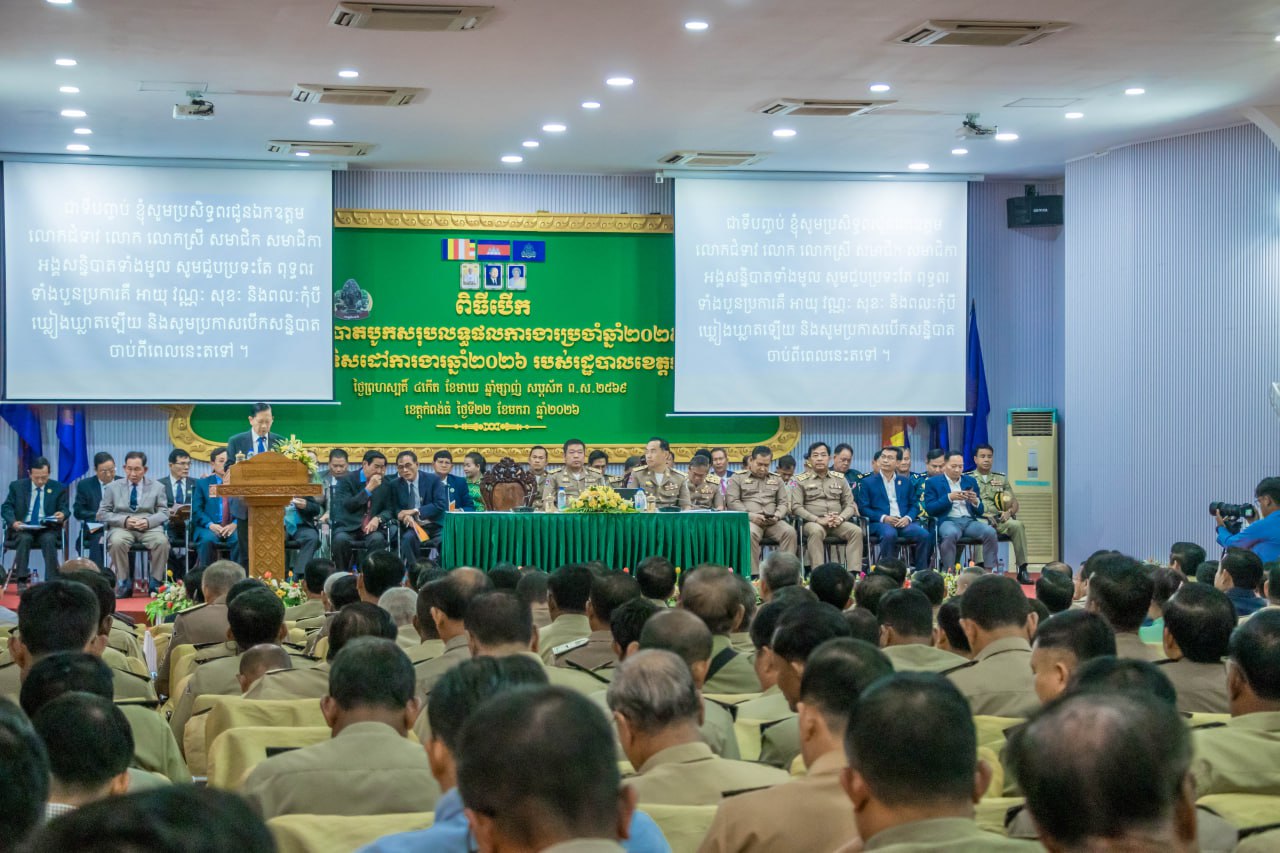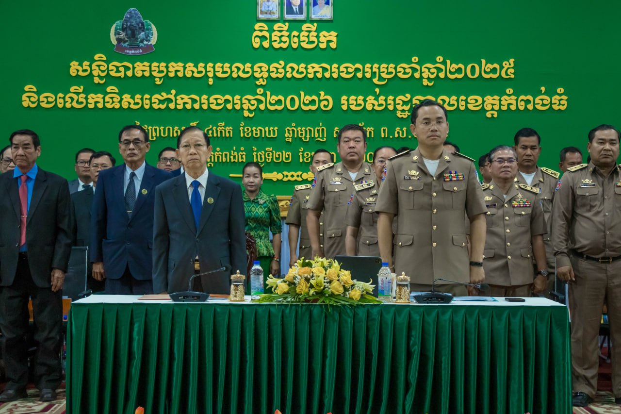 (កំពង់ធំ)៖ រដ្ឋបាលខេត្តកំពង់ធំ បានរៀបចំពិធីបើកសន្និបាតបូកសរុបលទ្ធផលការងារប្រចាំឆ្នាំ២០២៥ និងលើកទិសដៅការងារឆ្នាំ២០២៦ របស់រដ្ឋបាលខេត្ត ក្រោមអធិបតីភាពលោក ដៀប ពីរី ប្រធានក្រុមប្រឹក្សាខេត្ត និងលោក នួន ផារ័ត្ន អភិបាលខេត្តកំពង់ធំ នាថ្ងៃទី២២ ខែមករា ឆ្នាំ២០២៦ នៅសាលប្រជុំប្រាសាទសំបូរព្រៃគុក សាលាខេត្តកំពង់ធំ។