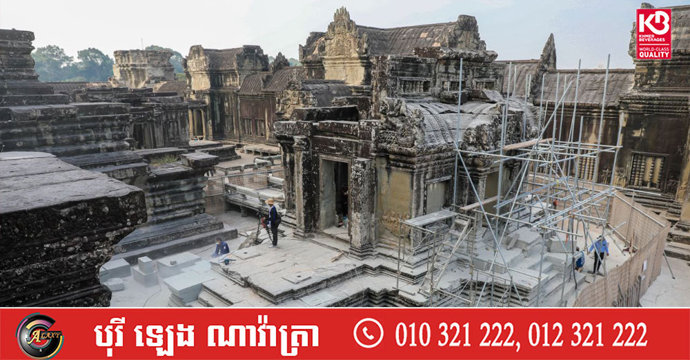 (សៀមរាប)៖ ក្រុមអ្នកជំនាញរបស់នាយកដ្ឋានអភិរក្សប្រាសាទ និងបុរាណវិទ្យា នៃអាជ្ញាធរជាតិអប្សរា គ្រោងនឹងចំណាយពេល៤ខែ ដើម្បីជួសជុលបណ្ណាល័យខាងជើងនៃជាន់ទី២ របស់ប្រាសាទអង្គរវត្ត ដែលមានការខូចខាតឱ្យរឹងមាំឡើងវិញ។